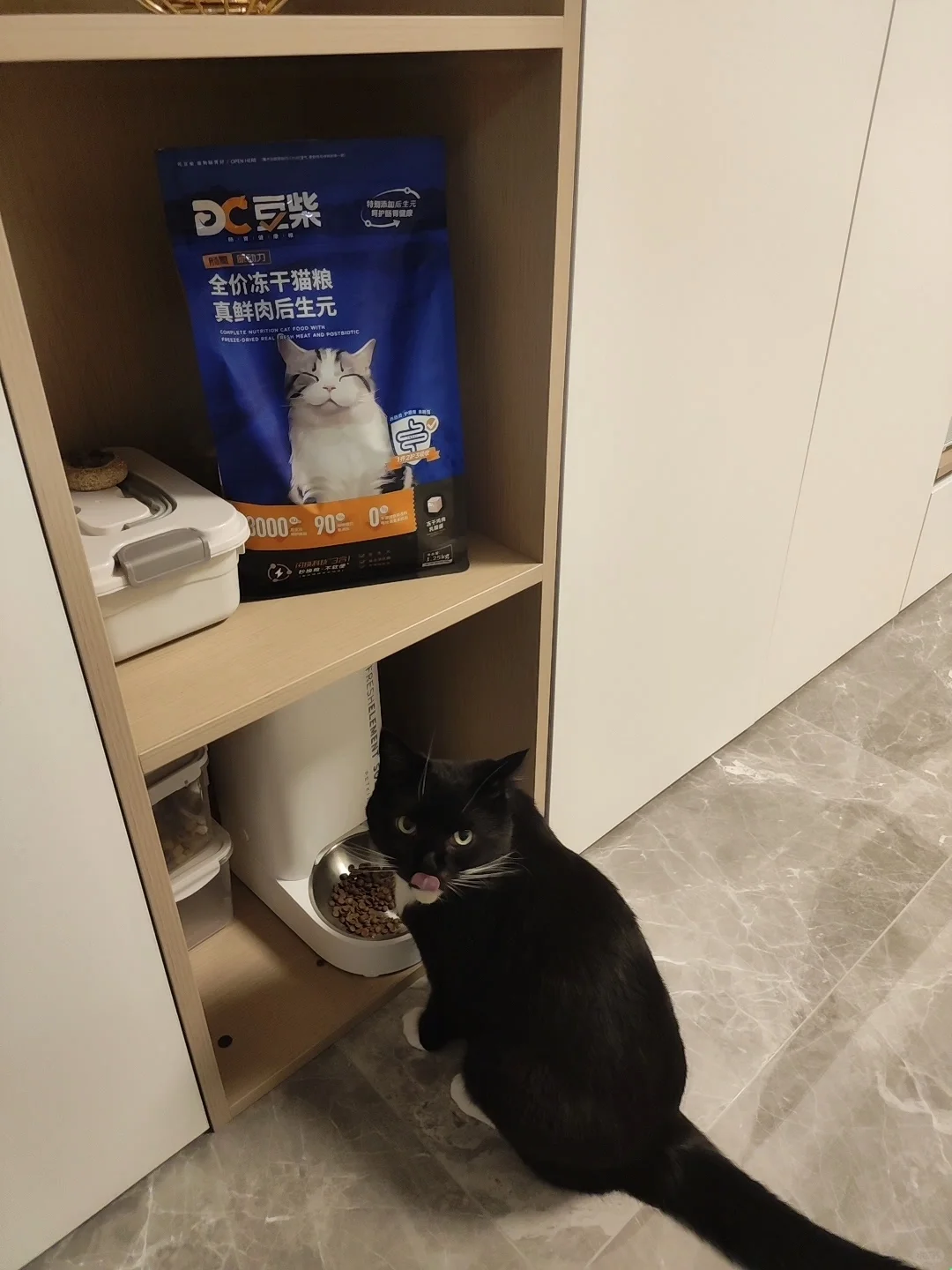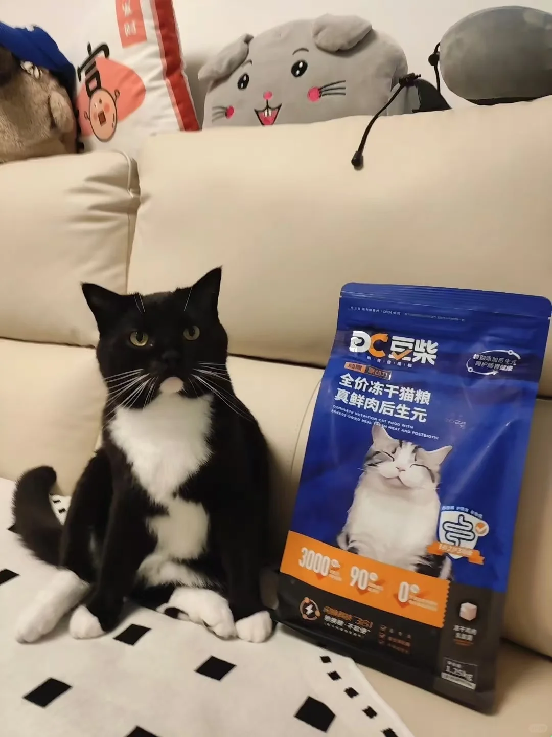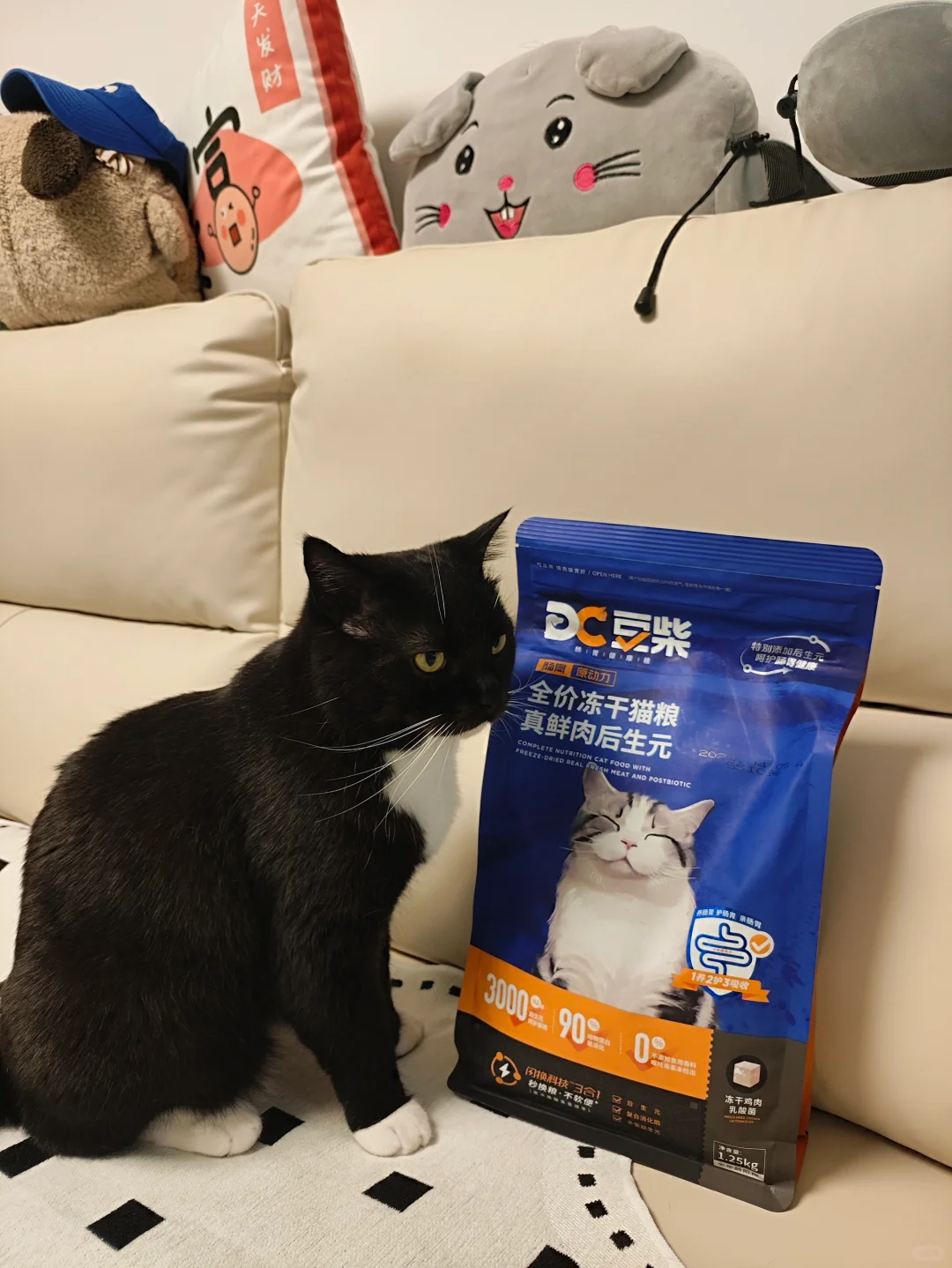 卡卡还特别喜欢豆柴猫粮里面添加的鸡肉乳酸菌冻干,鸡肉乳酪的成分对卡卡这种奶味脑袋的小猫咪特别有吸引力,同时里面的乳酸菌还可以帮助清扫猫猫肠道有害菌群,帮助平衡肠道微生态。