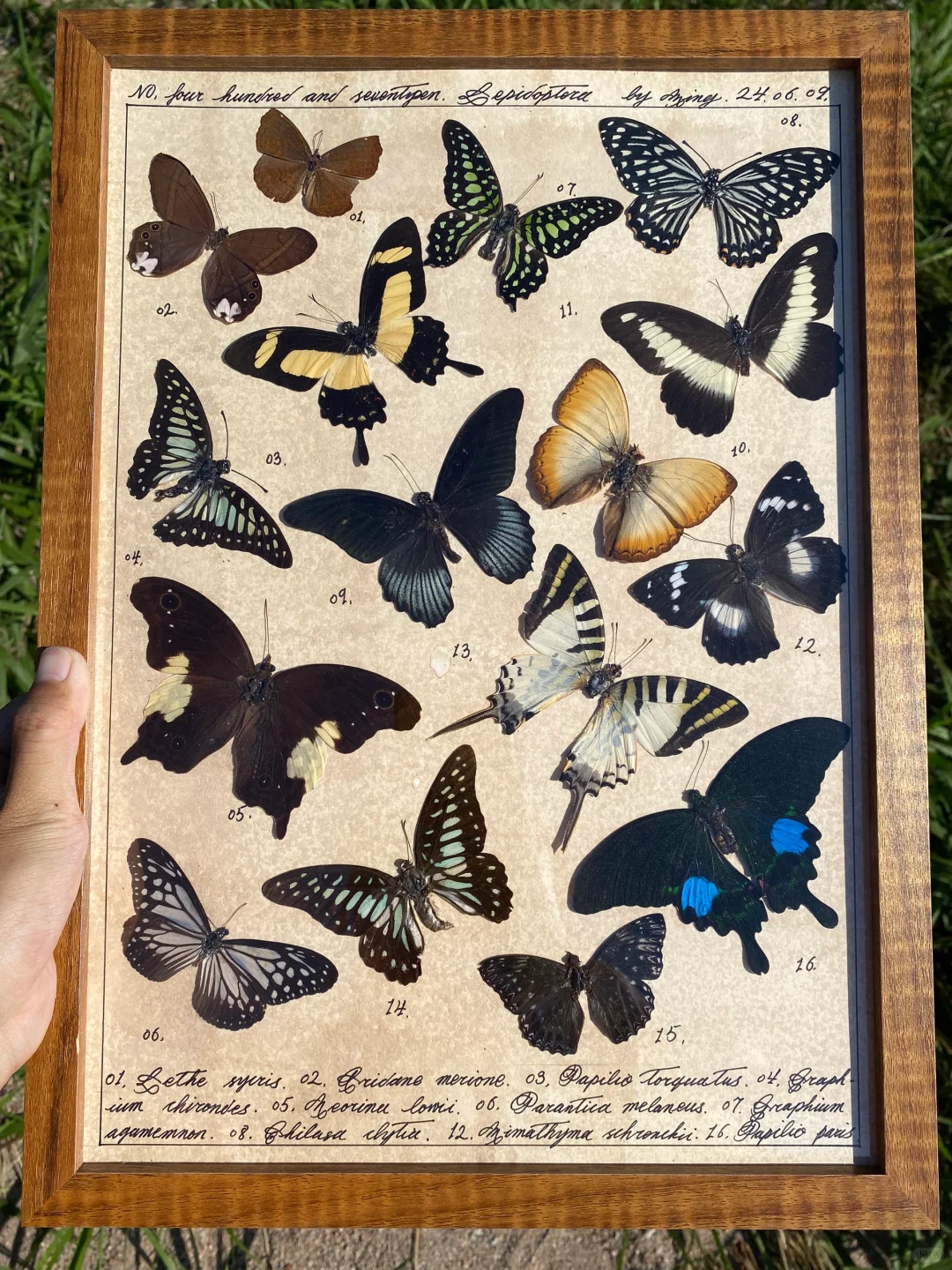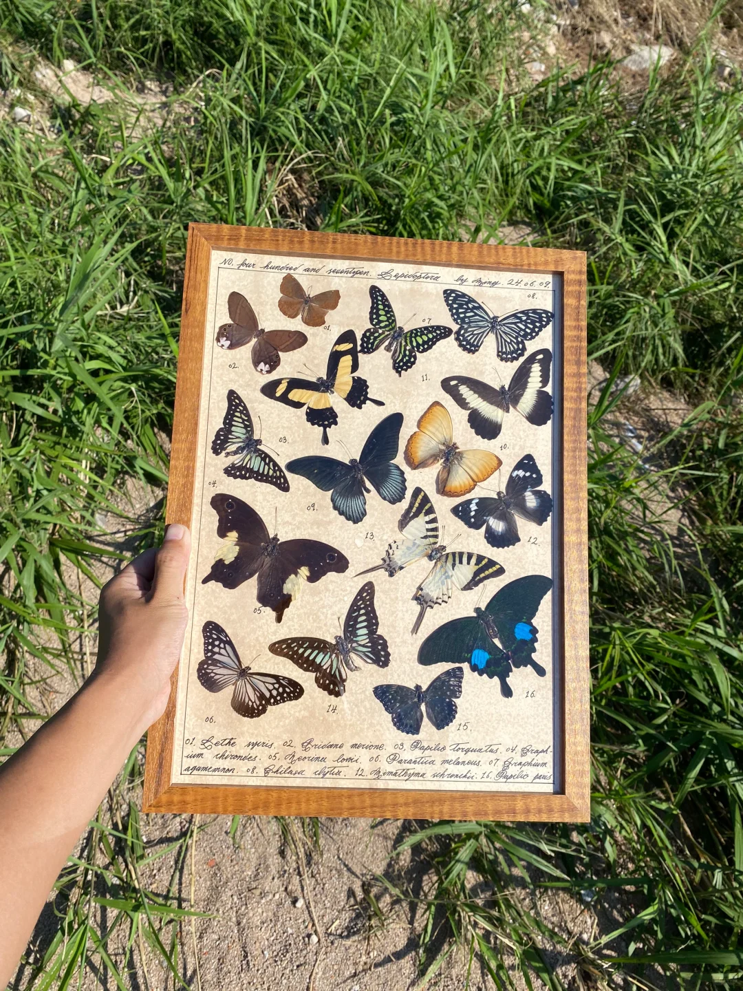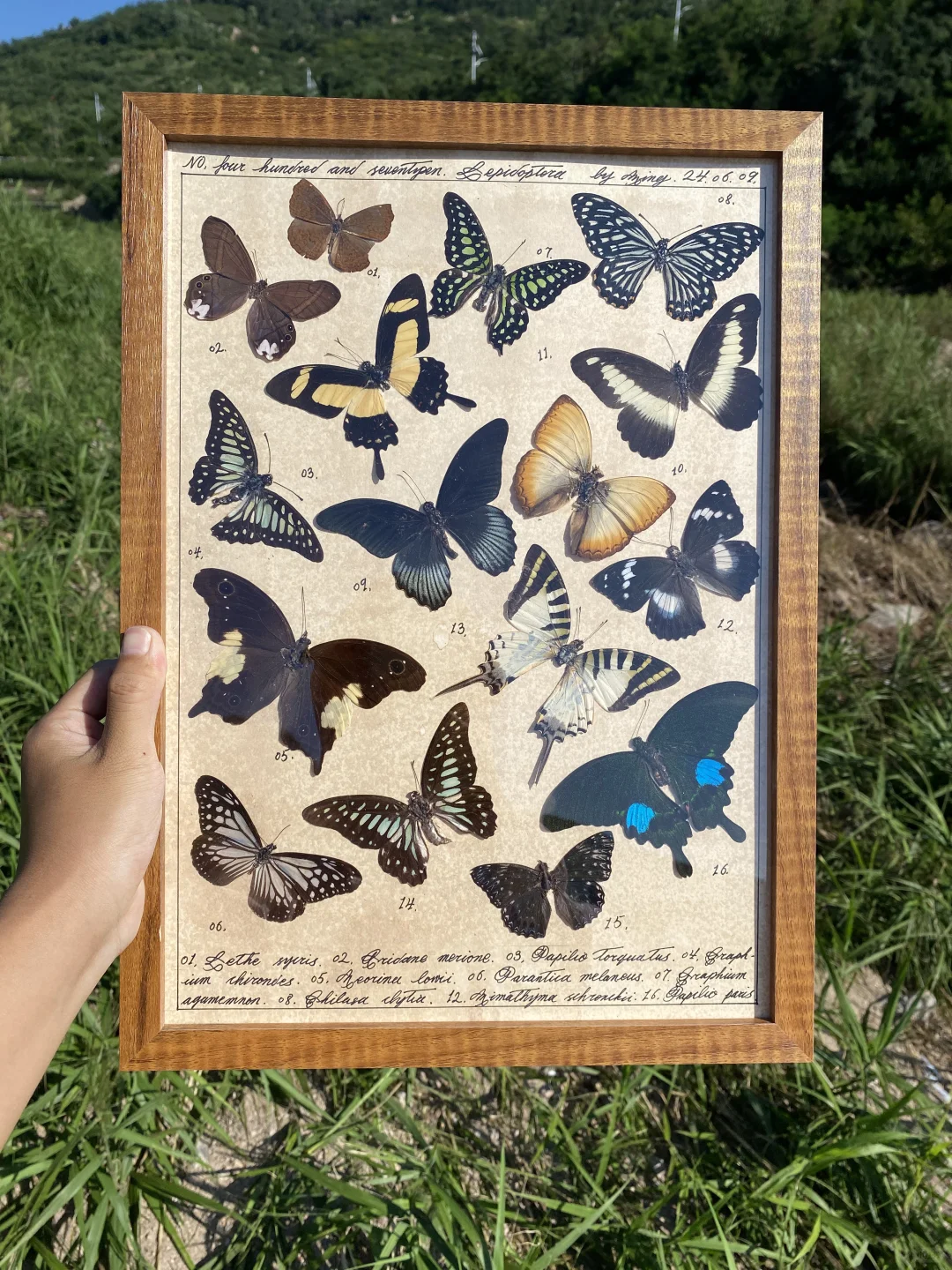 哎呦,蝴蝶标本飞不起来了呗,美丽定格在框框里,昆虫的自由成了一种装饰