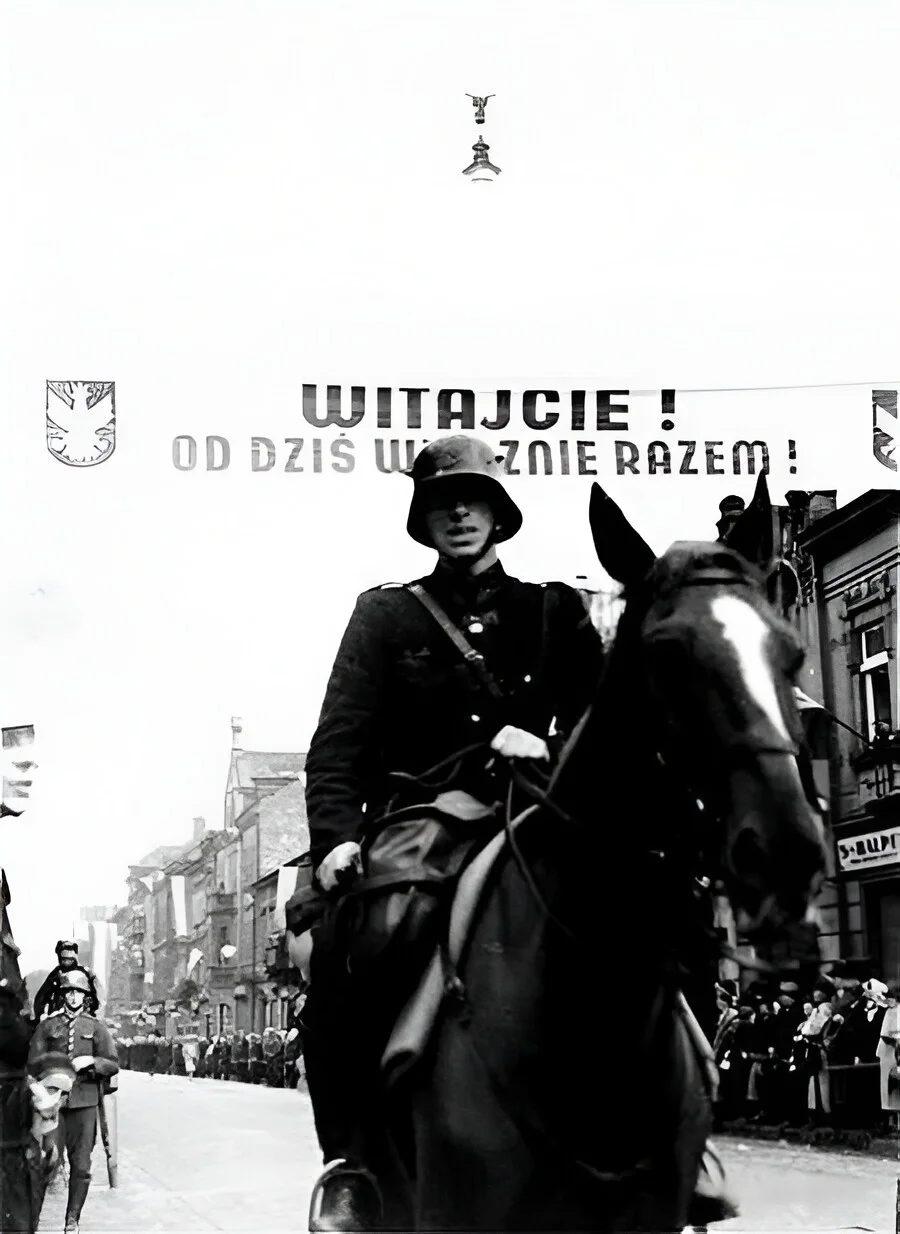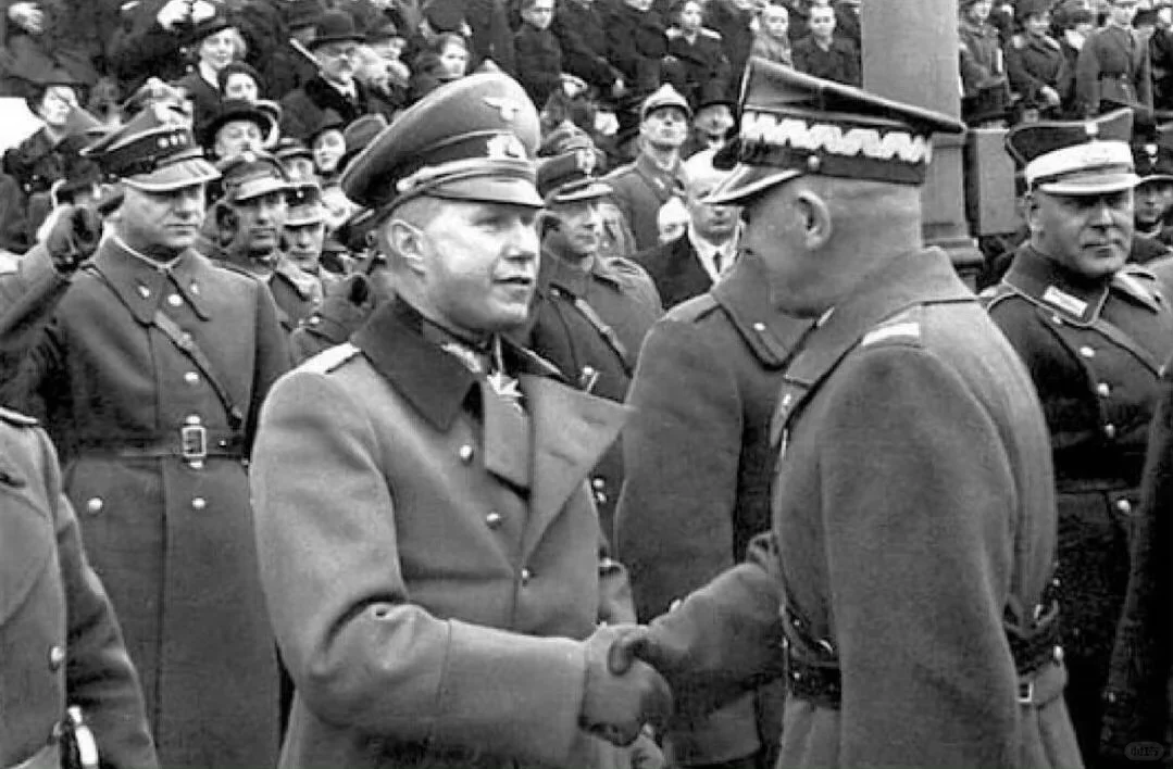 图8:合作侵略并瓜分完捷克斯洛伐克后,德国与波兰指挥官进行友好握手