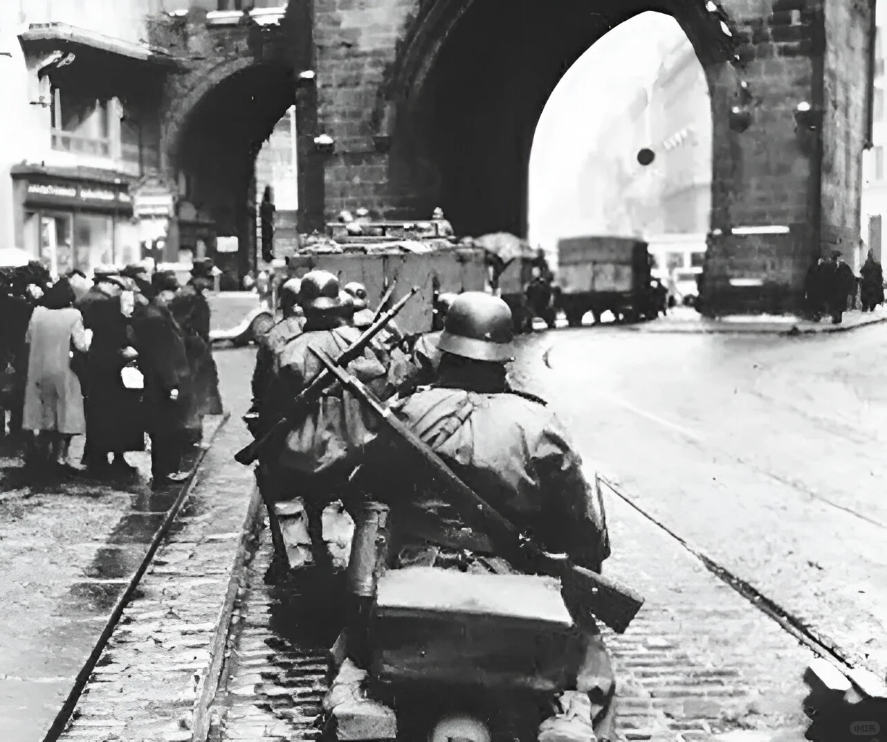图6:德军占领布拉格,捷克斯洛伐克的抵抗很快遭到德军瓦解,此时的捷克斯洛伐克成为了任人宰割的对象