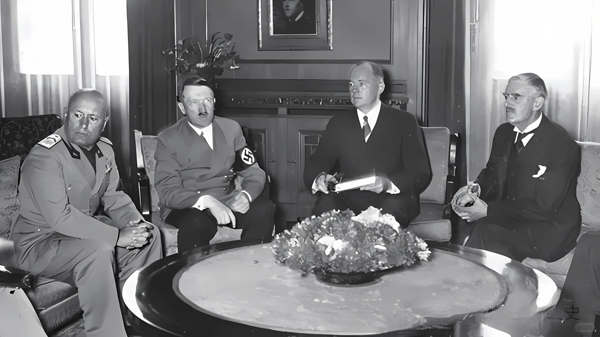 图2:墨尼黑会议中的墨索里尼、小胡子、法国总理达拉第、英国首相张伯伦(从左至右)