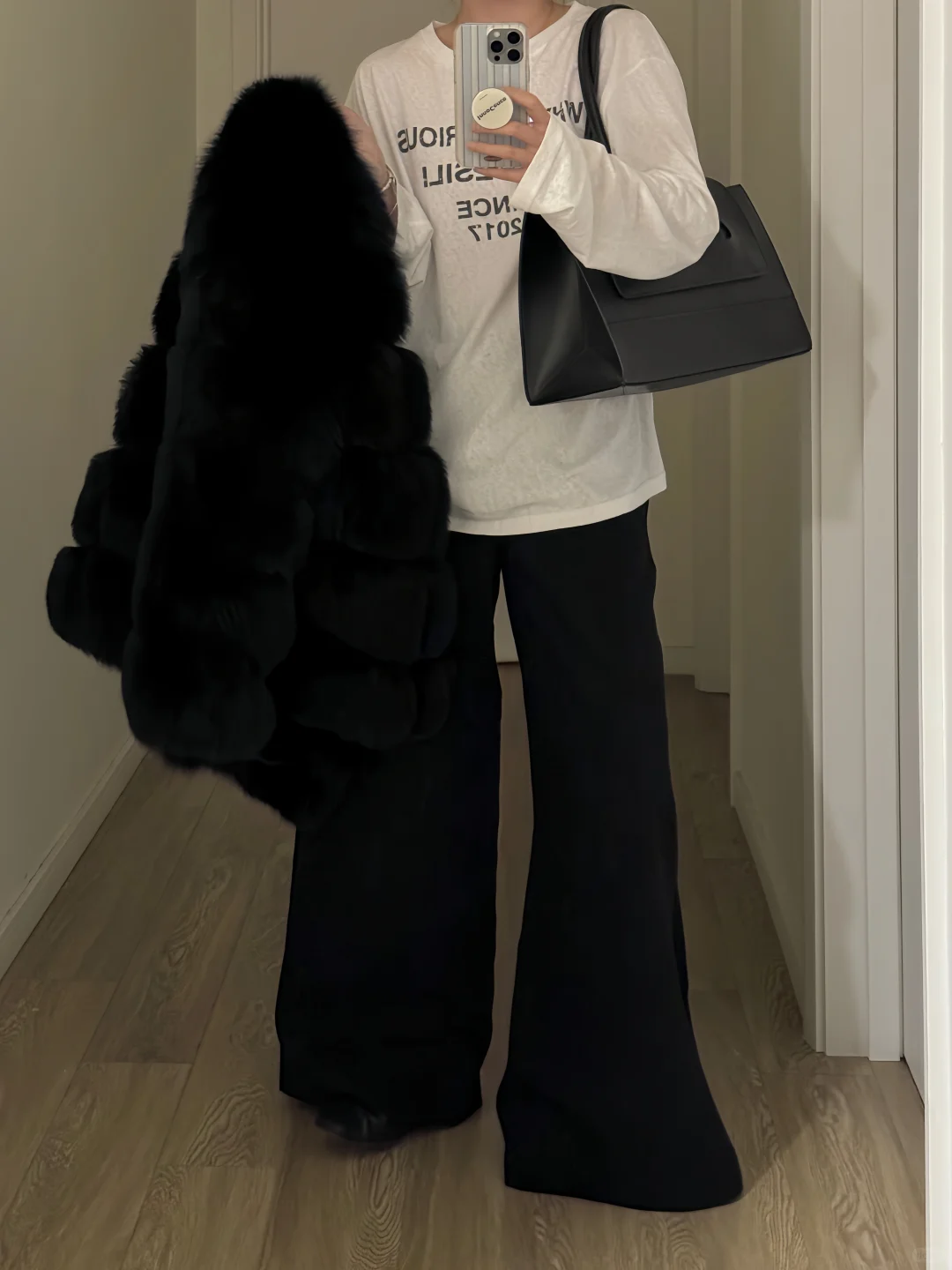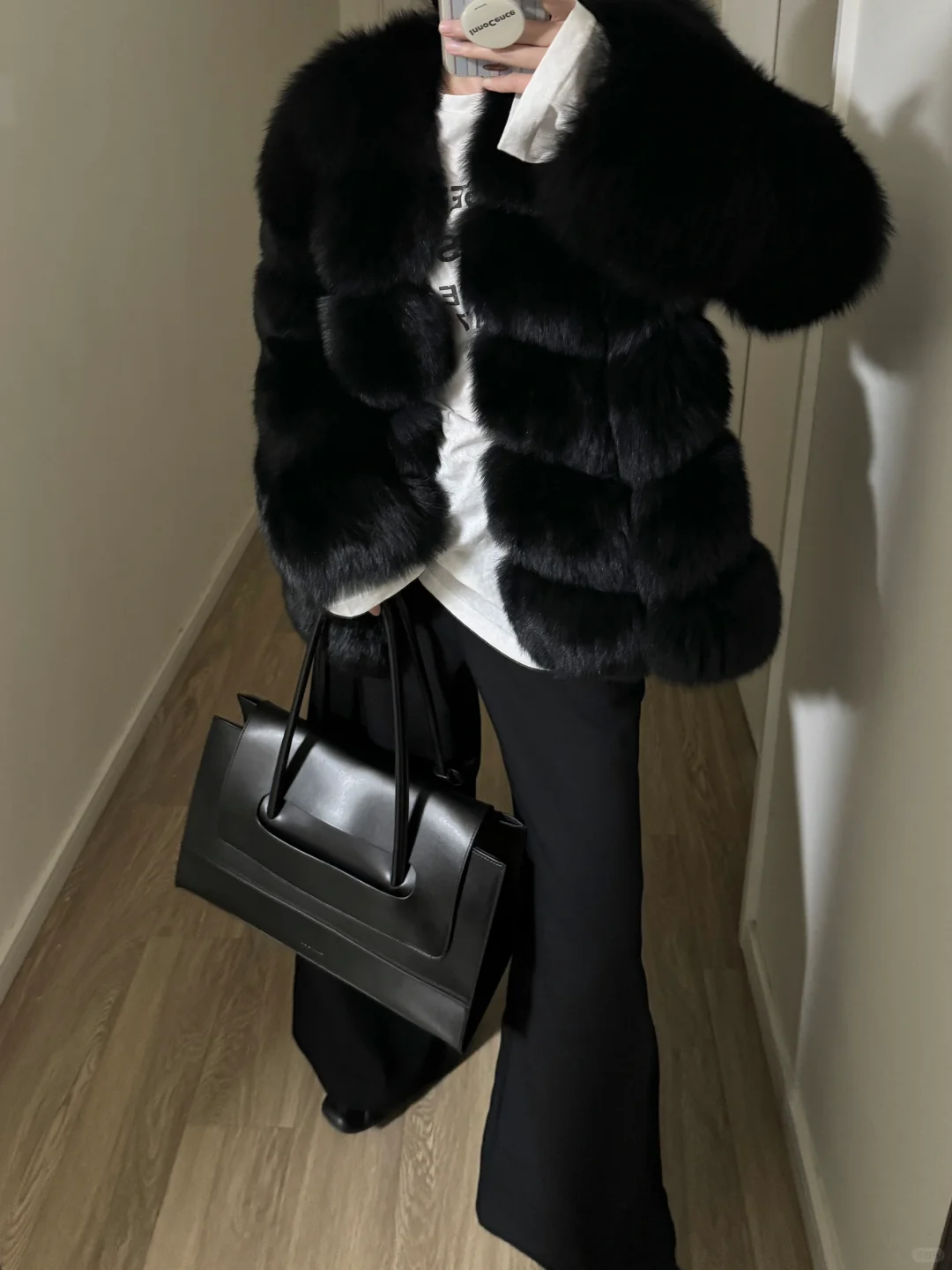 反季买皮草黑色系穿搭秋冬穿搭皮草皮草穿搭皮草外套阿颖阿颖皮草OOTD比天气先回暖 慵懒感穿搭