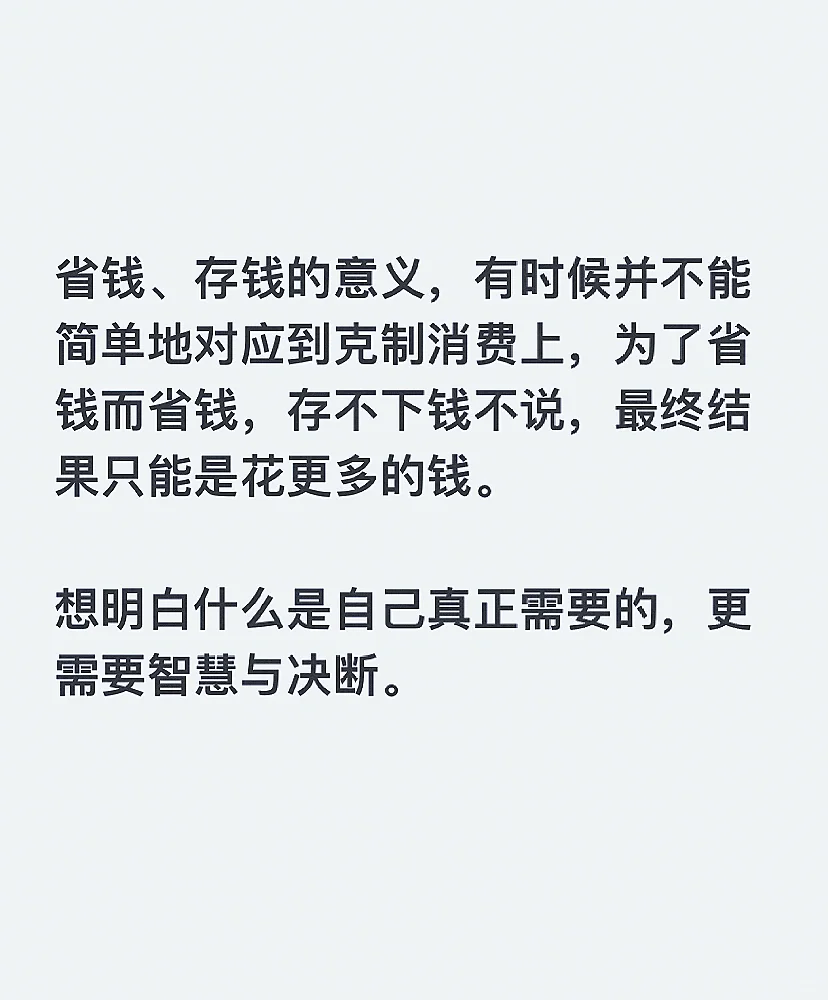 [彩虹R]省钱、存钱的意义,有时候并不能简单地对应到克制消费上,为了省钱而省钱,存不下钱不说,最终结果只能是花更多的钱。