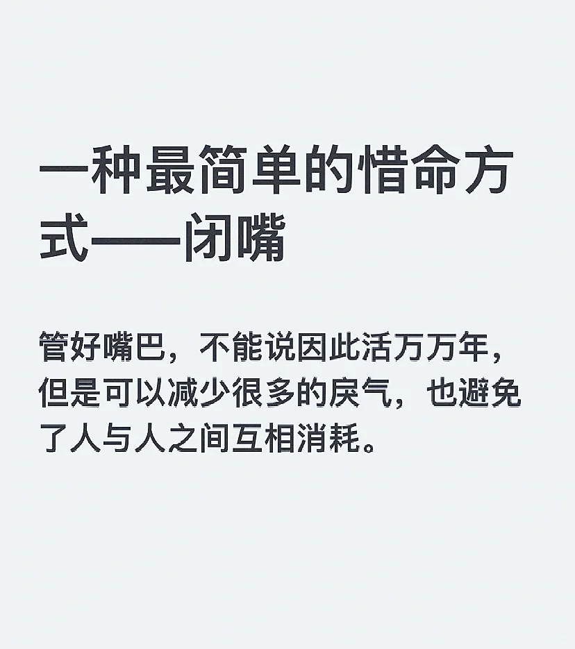 管好嘴巴,不能说因此活万万年,但是可以减少很多的戾气,也避免了人与人之间互相消耗。