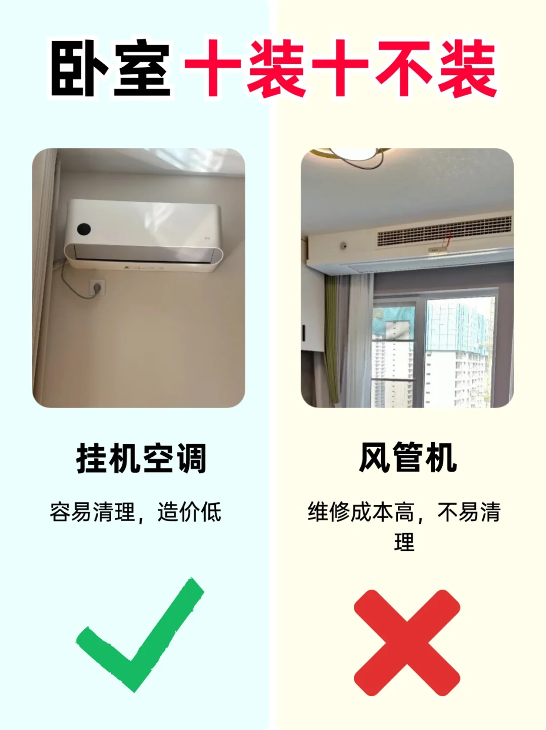⭕️不装风管机,维修成本高,不易清理