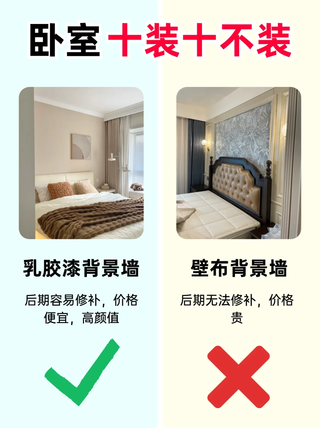 ⭕️不装壁布背景墙,后期无法修补,价格贵