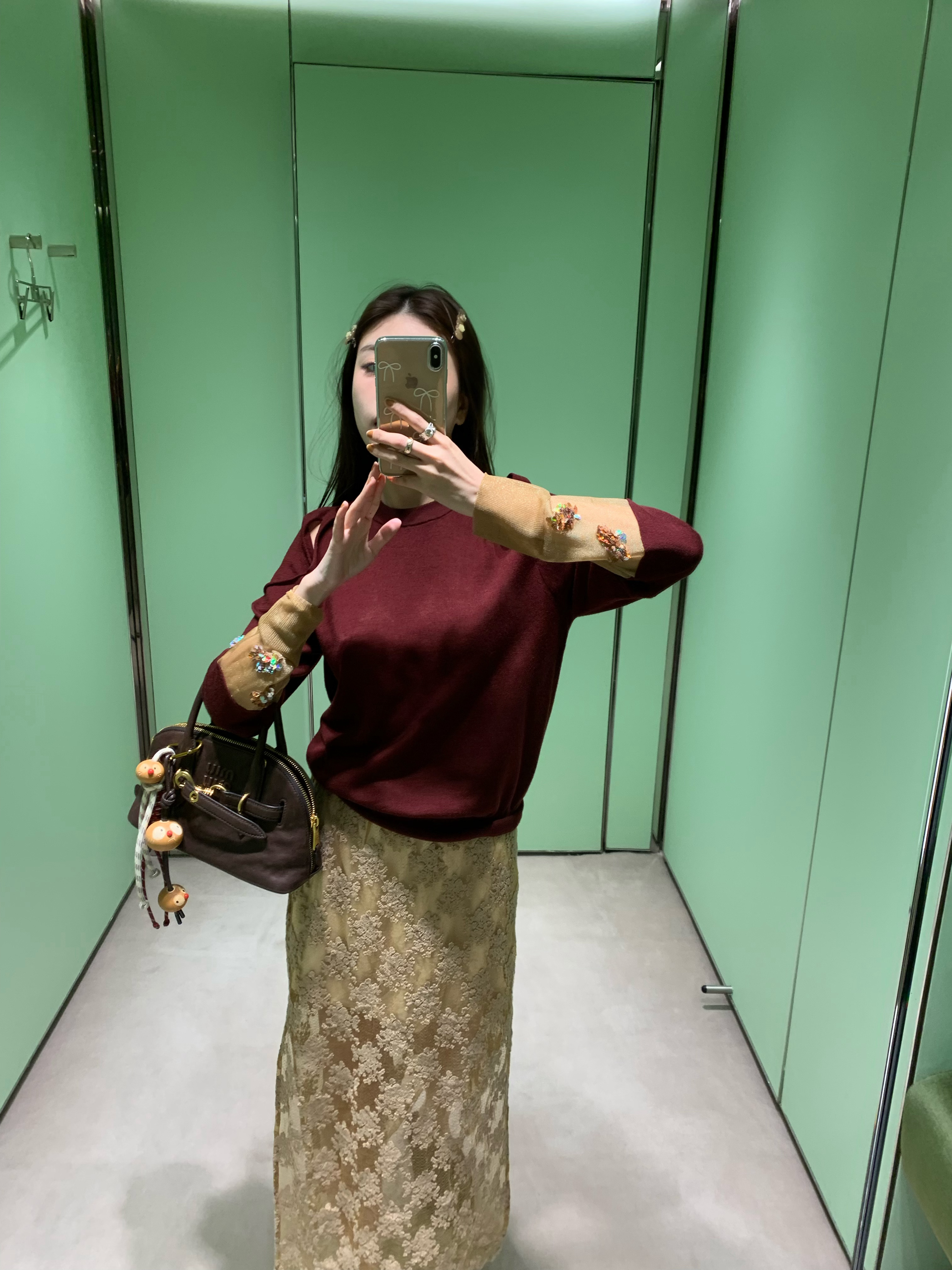 想发这件腊肠修勾一件t都是手工的 她领圈和袖边都是手工钉珠的 五颜六色的珠珠小花