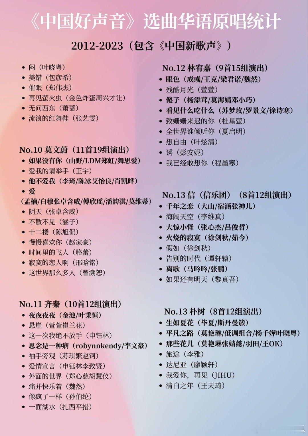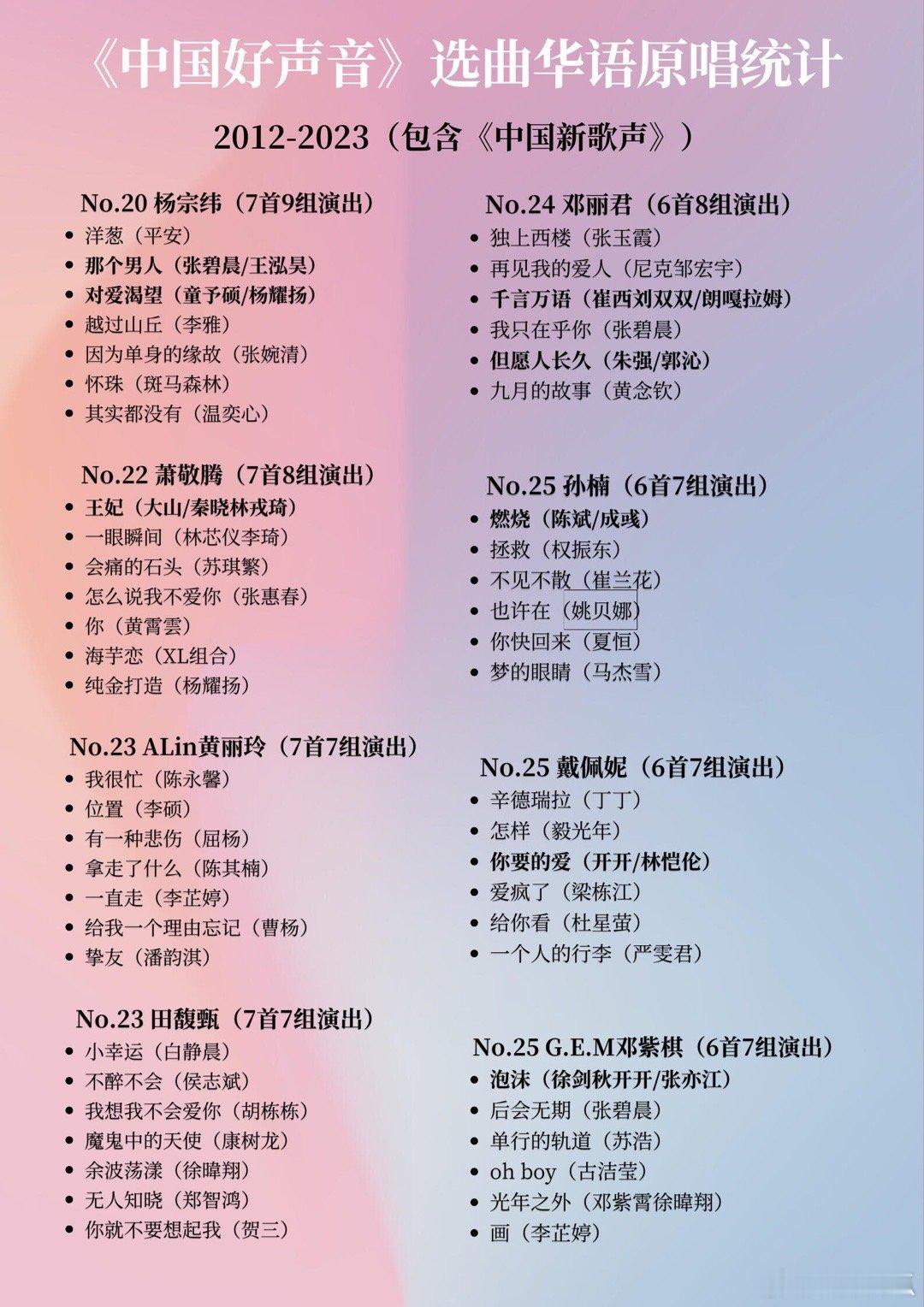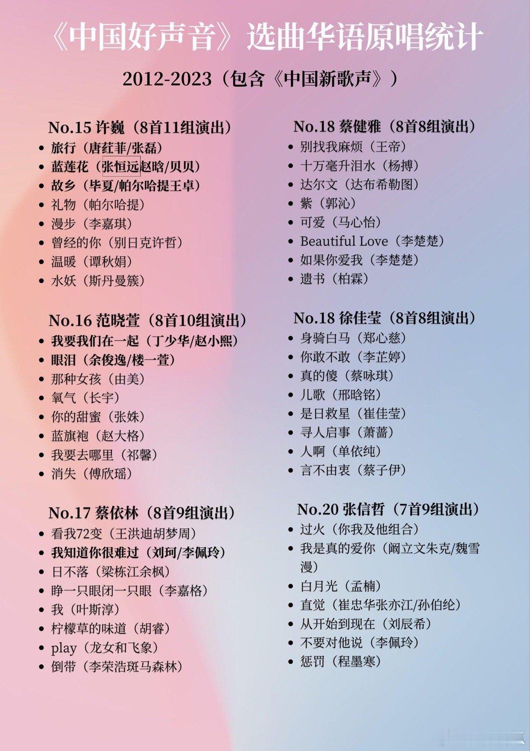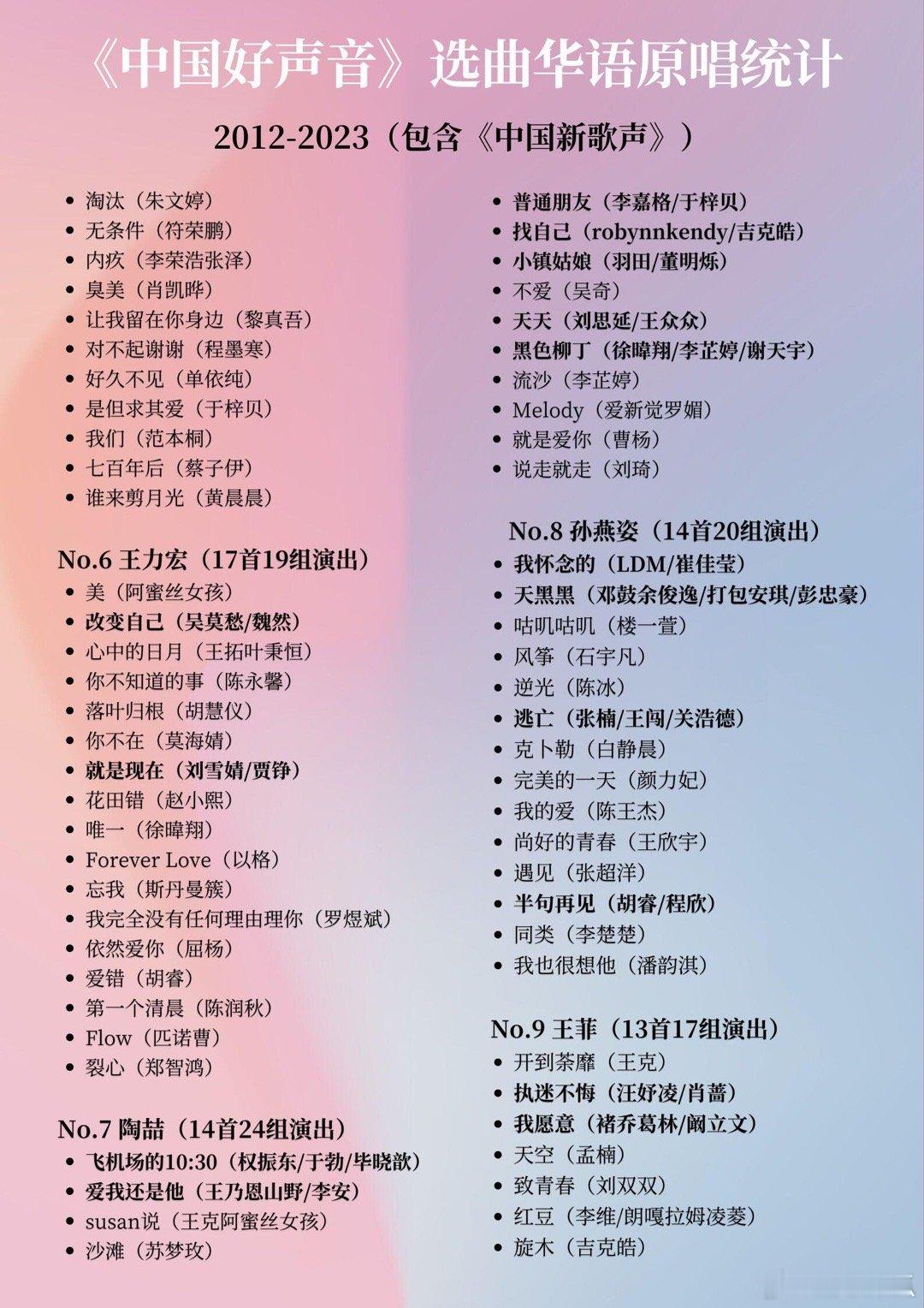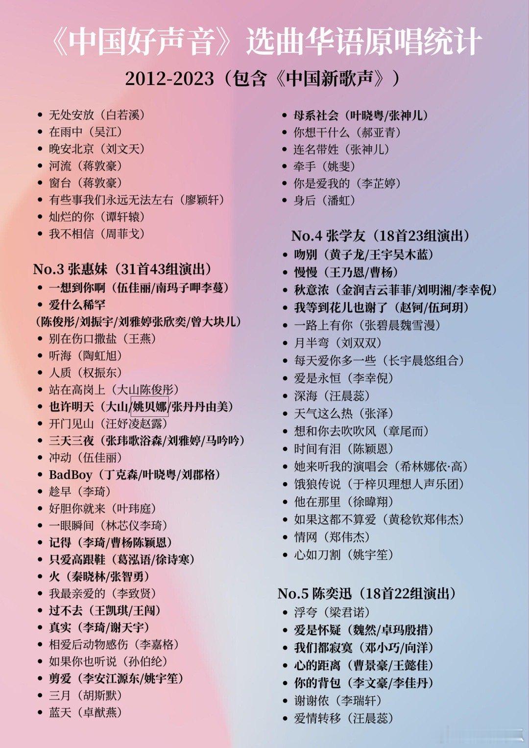 《中国好声音》选手选曲:素人最爱谁的歌?