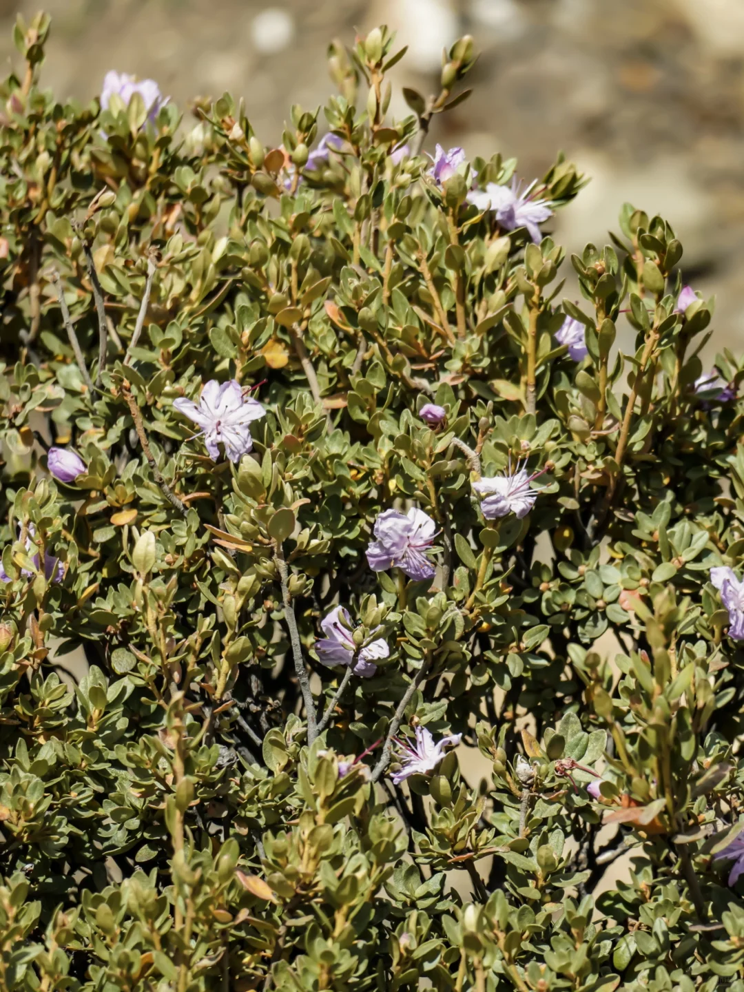 鳞腺杜鹃,隶属杜鹃花科杜鹃属,栖息于海拔3000至4000米的山坡溪谷、岩石边缘或灌丛之间。它的身影出现在中国川西南、印度北部、尼泊尔和巴基斯坦的高原之上。在川西南,它的花瓣以白色为主,带有红晕,花心点缀着几许深红色斑点;而在印度,这些花则更倾向于粉红色或紫红色,花冠上散布着细腻的斑点。鳞腺杜鹃的花朵与叶片皆小巧,却不失韵致,它们在甘孜的高原上悄然绽放,仿佛在诉说着这片土地的诗意与宁静。