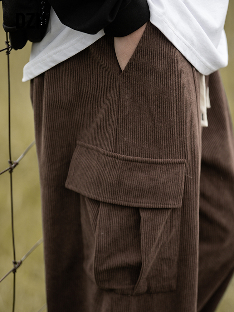 男士美式多口袋工装裤男直筒宽松2024新款灯芯绒男裤秋季休闲长裤