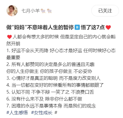 分享七月小羊关于做“妈妈“的感悟,极受用