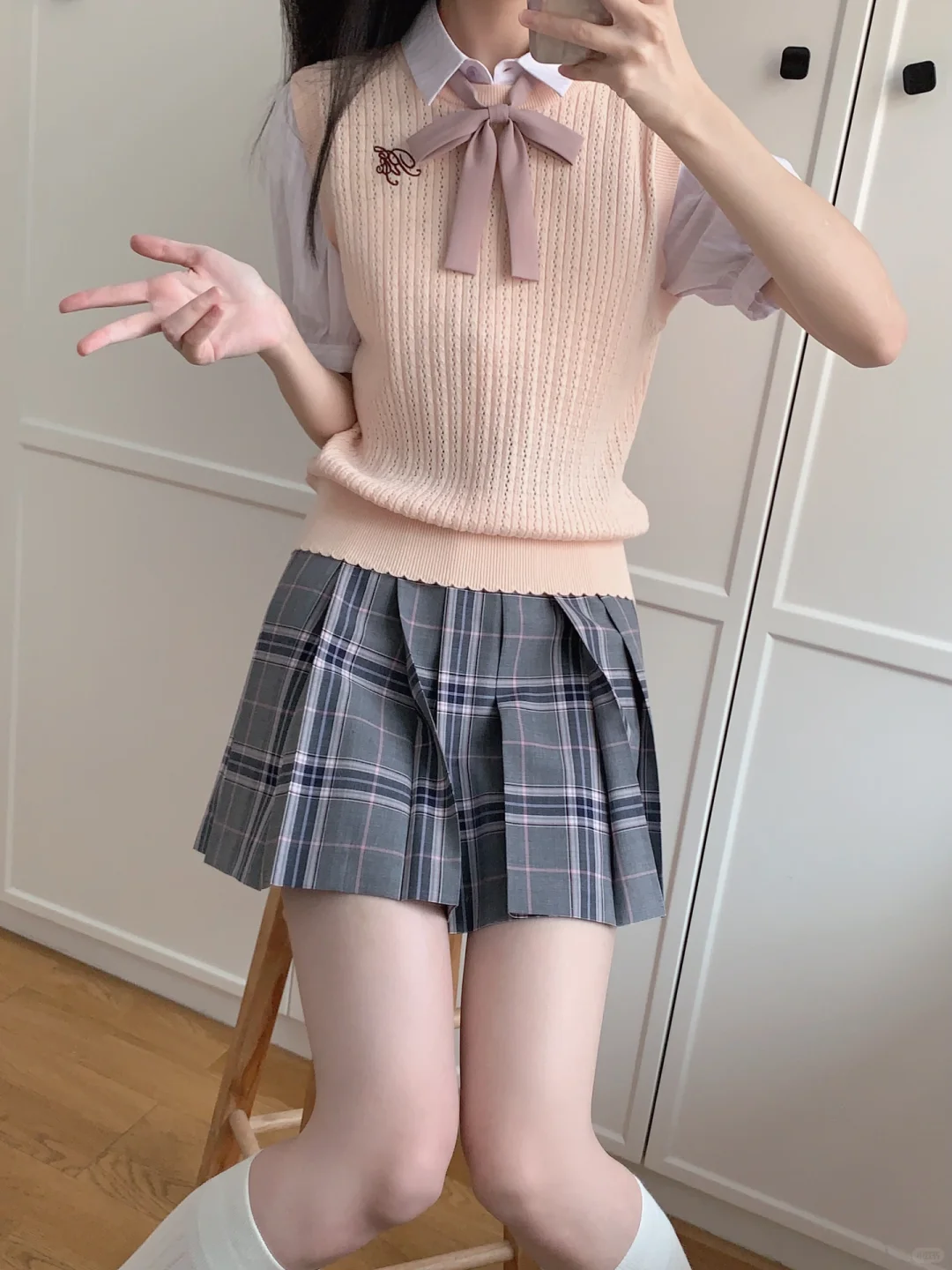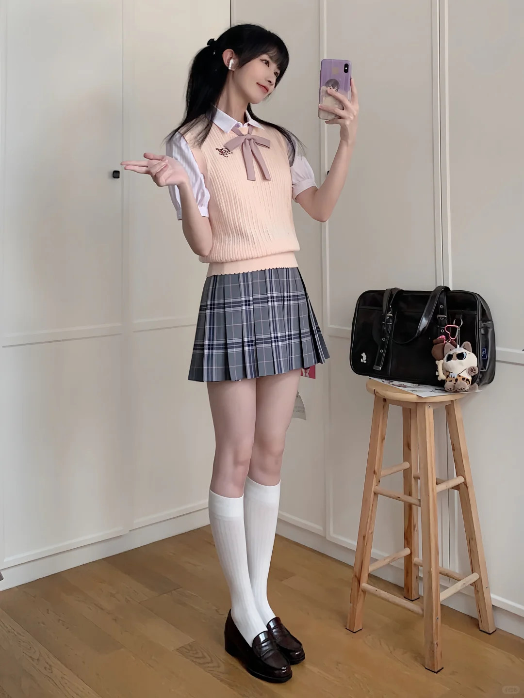 这个粉背心跟灰紫色也太适配了! 感觉加上反而更耐看!