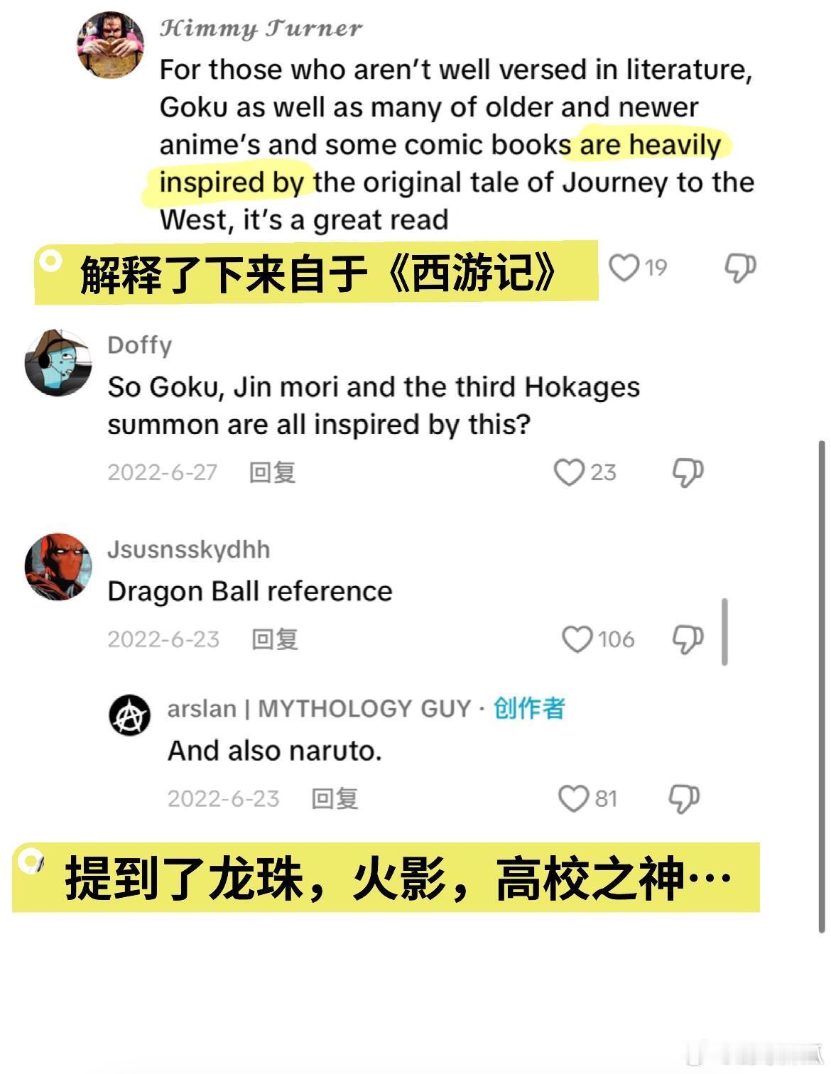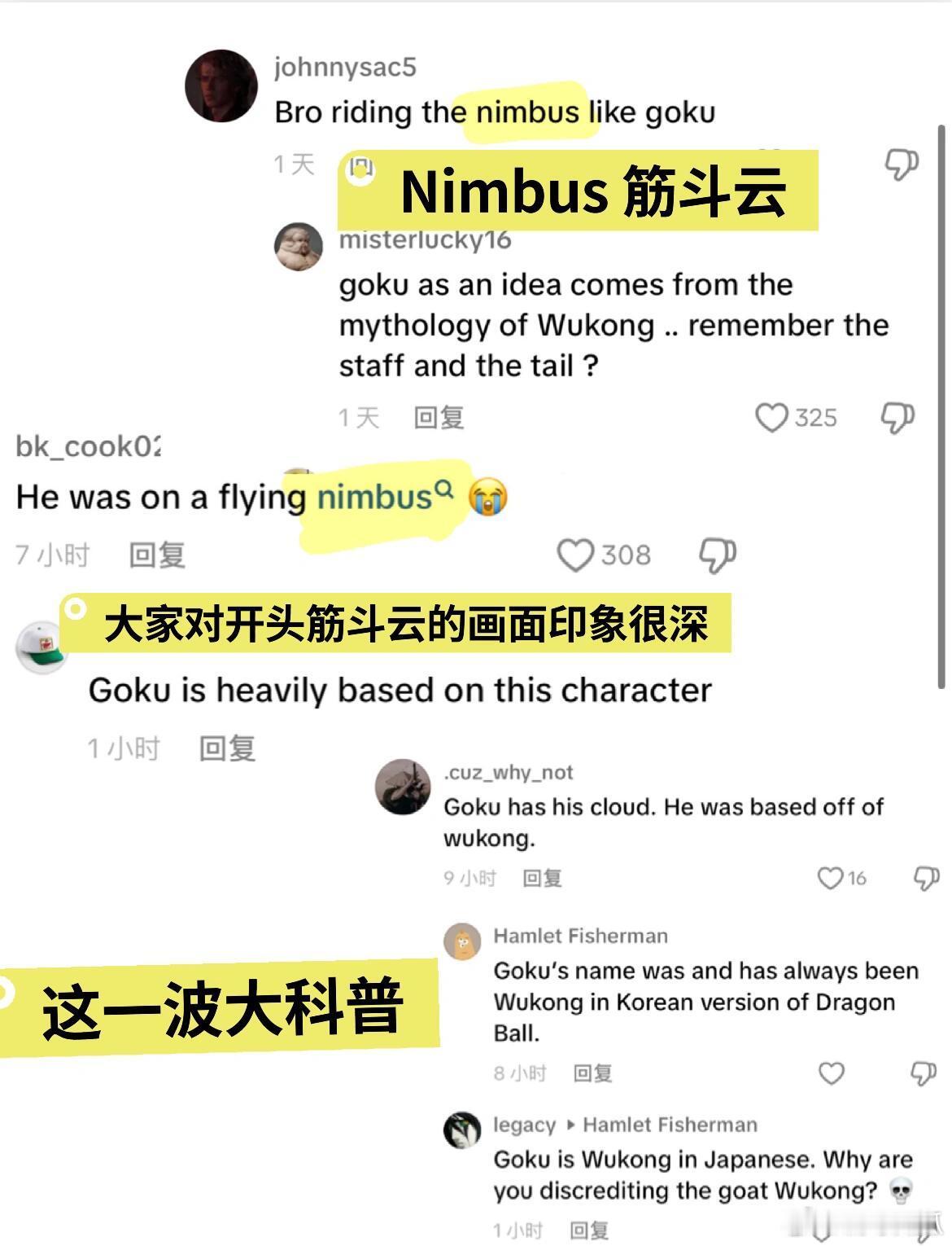 龙珠里的角色叫son goku,而黑神话中sun wukongn,在外国人看来是两个不同的名字。真的很多外国人并不知道原来西游记的悟空才是这些二次元角色的原型。
