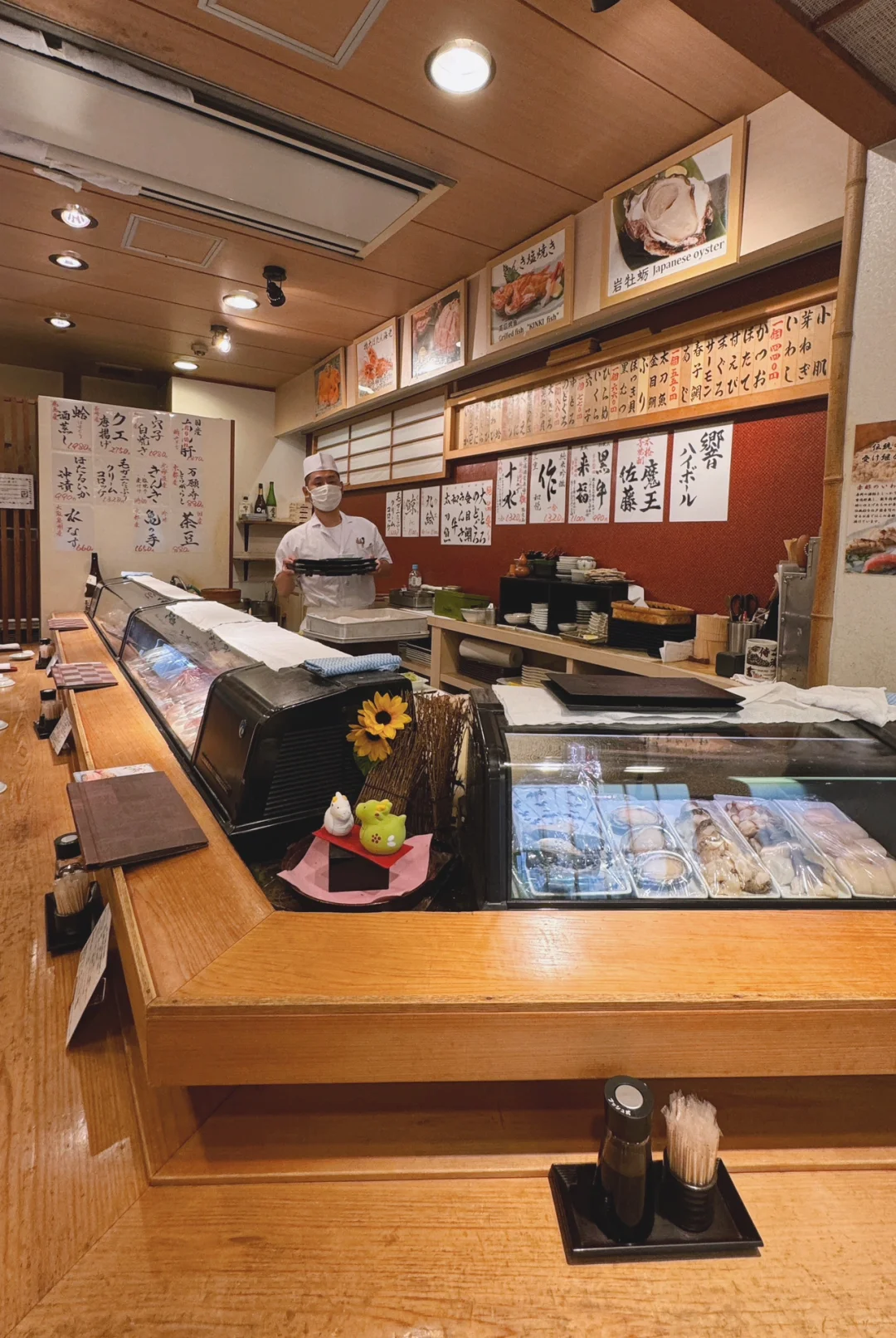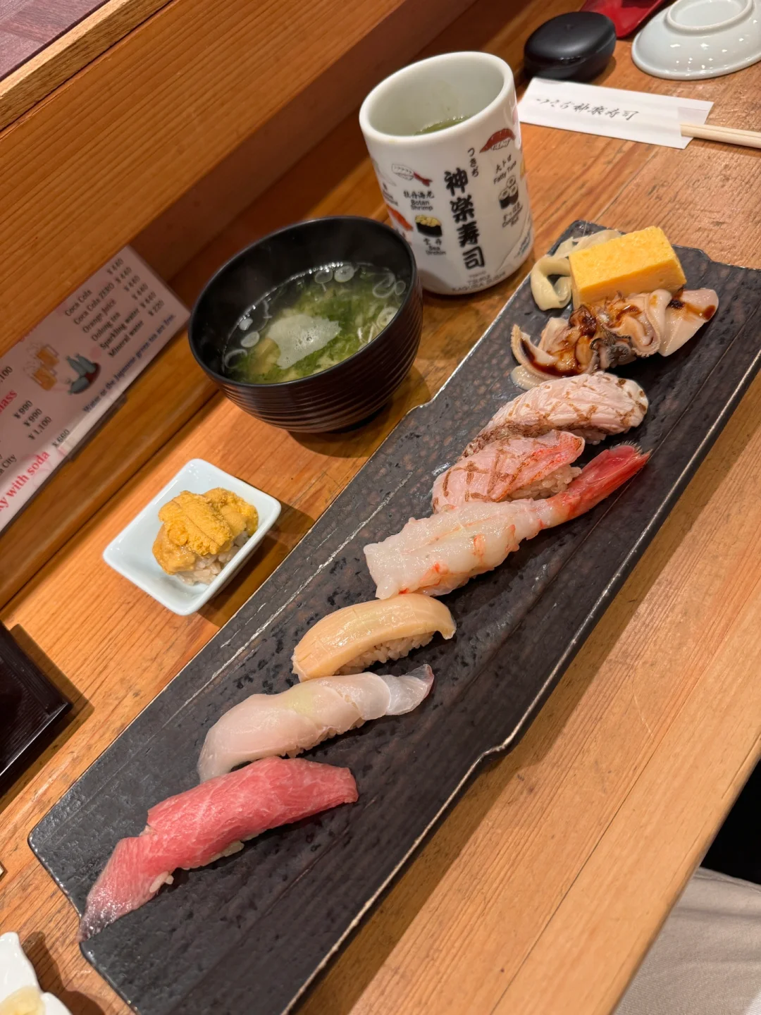 筑地市场那边有点像小渔村很朴素的感觉,大多矮建筑🏘️鱼生很多🐟但是批发零售为主,现场不方便吃,最后还是选择一家看起来很赞的配套日料店,小小的店面食材很新鲜,现切先做,口感特别鲜嫩😋
