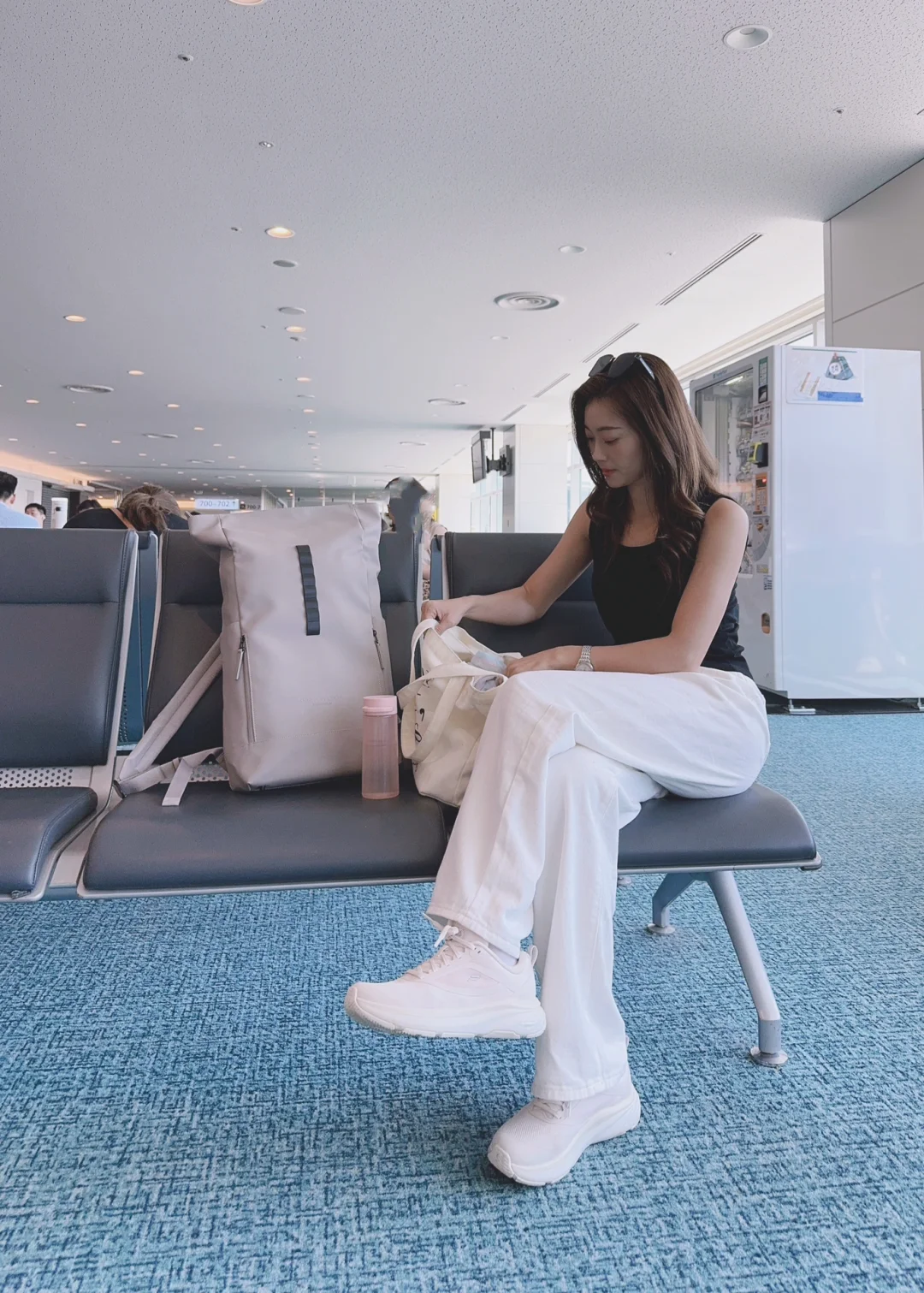 旅行必不可少的双肩包,容量超大,把证件🪪和日用品通通装进来,🐘大象灰皮质就很高级,搭配FILA柔云2跑鞋👟完全不累脚👣,就很City的感觉~