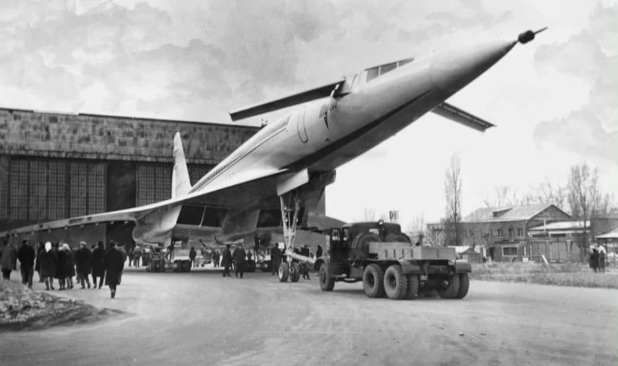 世界上第一架超音速客机tu144,由苏联从1962年开始研发 ,1968年12月31日首飞,1975年12月26日开始服役。