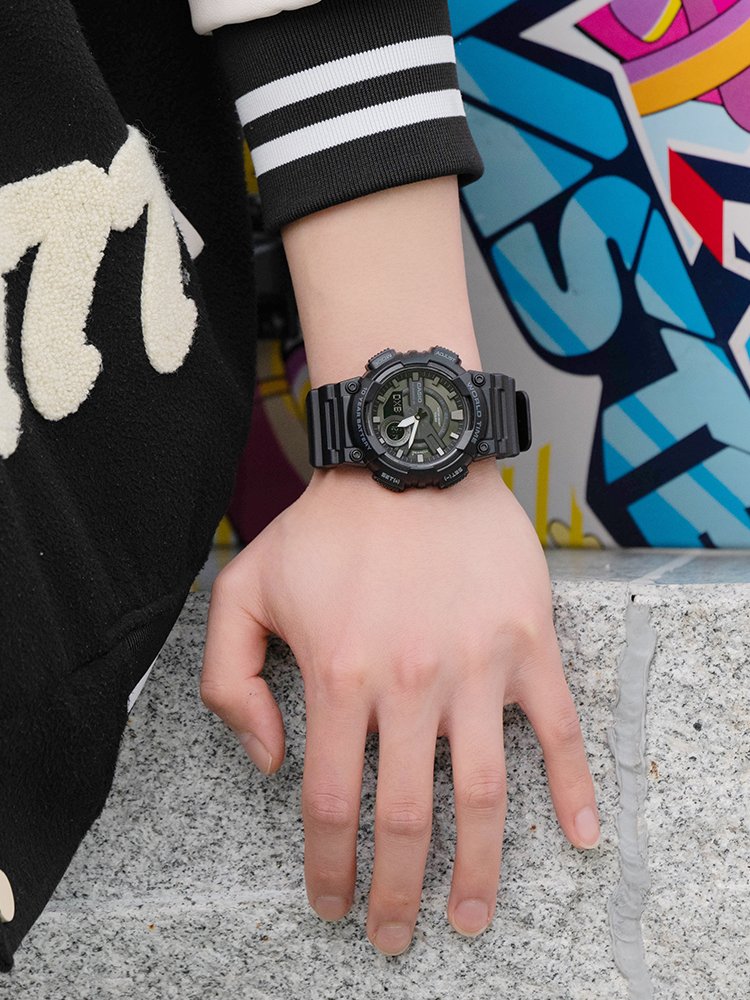 喜欢运动的学生党别错过!自带指针数字双显功能,醒目大气的大型数字时标和立体刻度很有潮流运动范,配合6点方向的电子显示方便又实用,闹铃秒表防水功能一应俱全,树脂表带轻盈舒适不发黄,学生党自用或者送礼物都很合适!