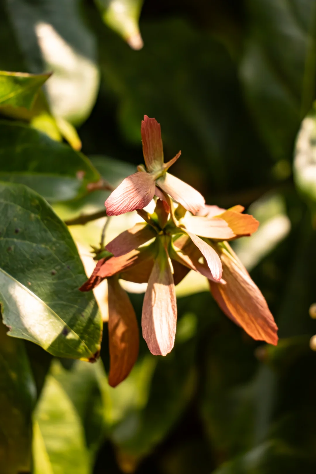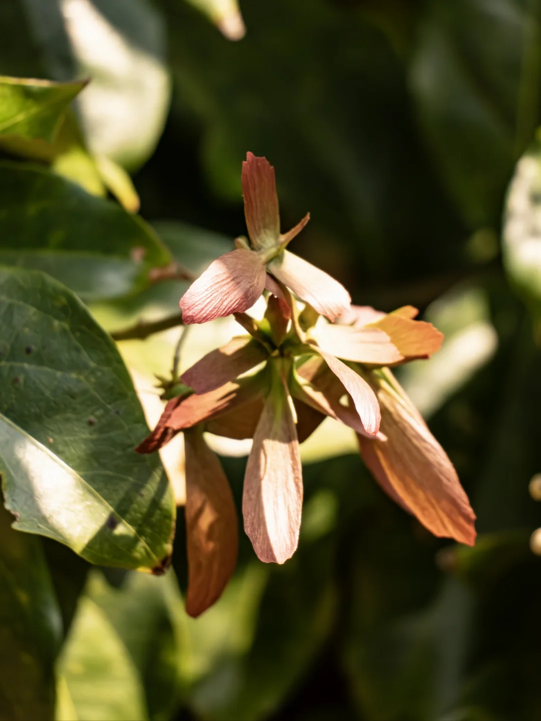 在版纳植物园寻找龙脑香科植物时,我偶然看到一个小朋友手里捧着一个粉色的风筝果,瞬间心生激动,迫不及待地向他询问了发现的地点。在家长友善的指引下,我立刻奔向那个角落。三月的紫风筝果正值花果期,娇嫩的粉色花朵映衬着枝头上已挂满的果实。这些小果实红通通的,仿佛已准备好展翅飞翔。然而,我心生疑惑,如此粉嫩的花为何称作紫花?或许,这就是大自然独特的浪漫,它们等待着风的轻抚,在那一刻,翩然启航,飞向未知的远方。