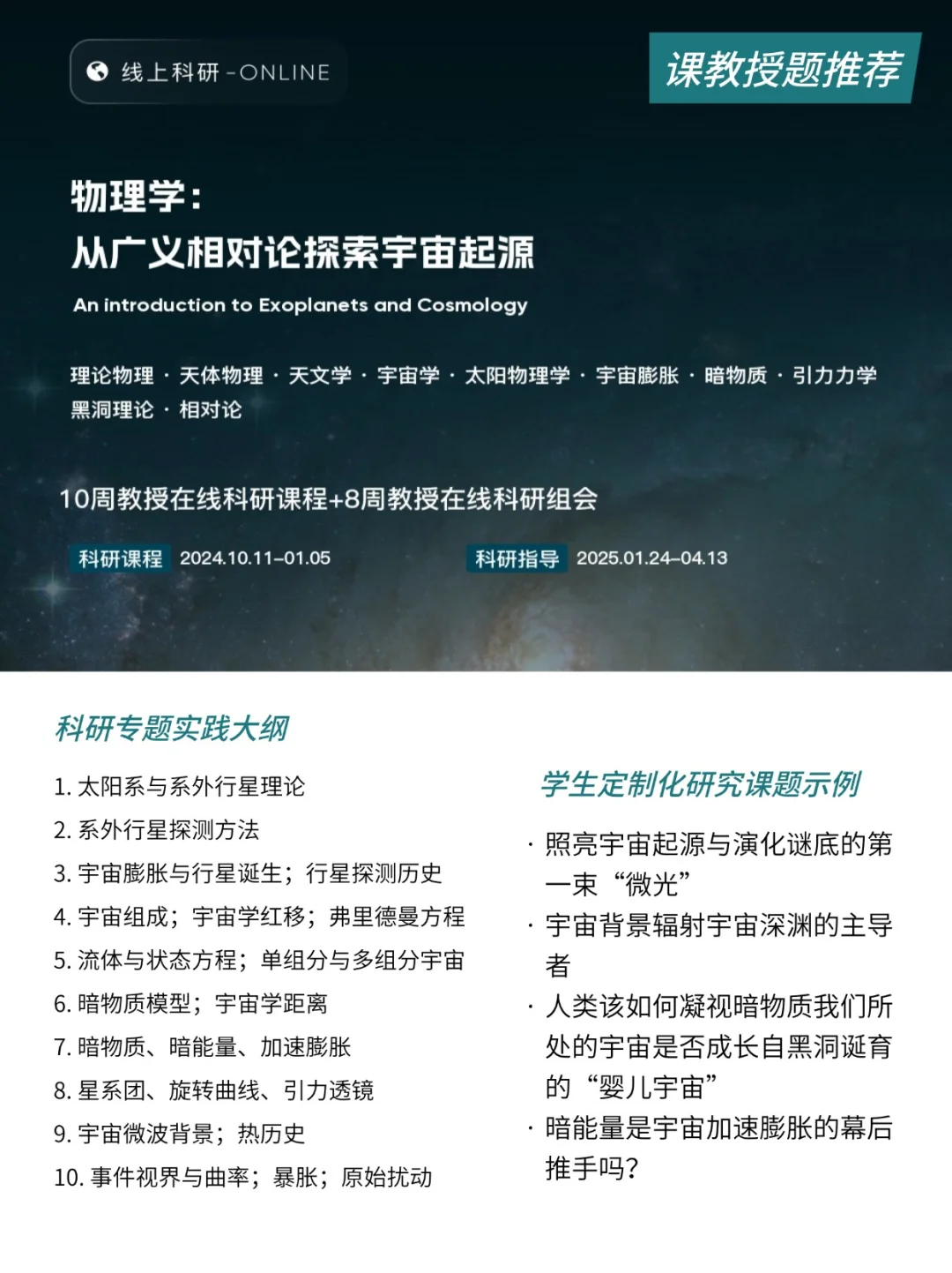 学生们将通过该课题更好地理解宇宙膨胀、加速度原理以及红移现象等,进而能够预测宇宙未来的演变趋势和命运。⭐️往期学生小组课题包括: