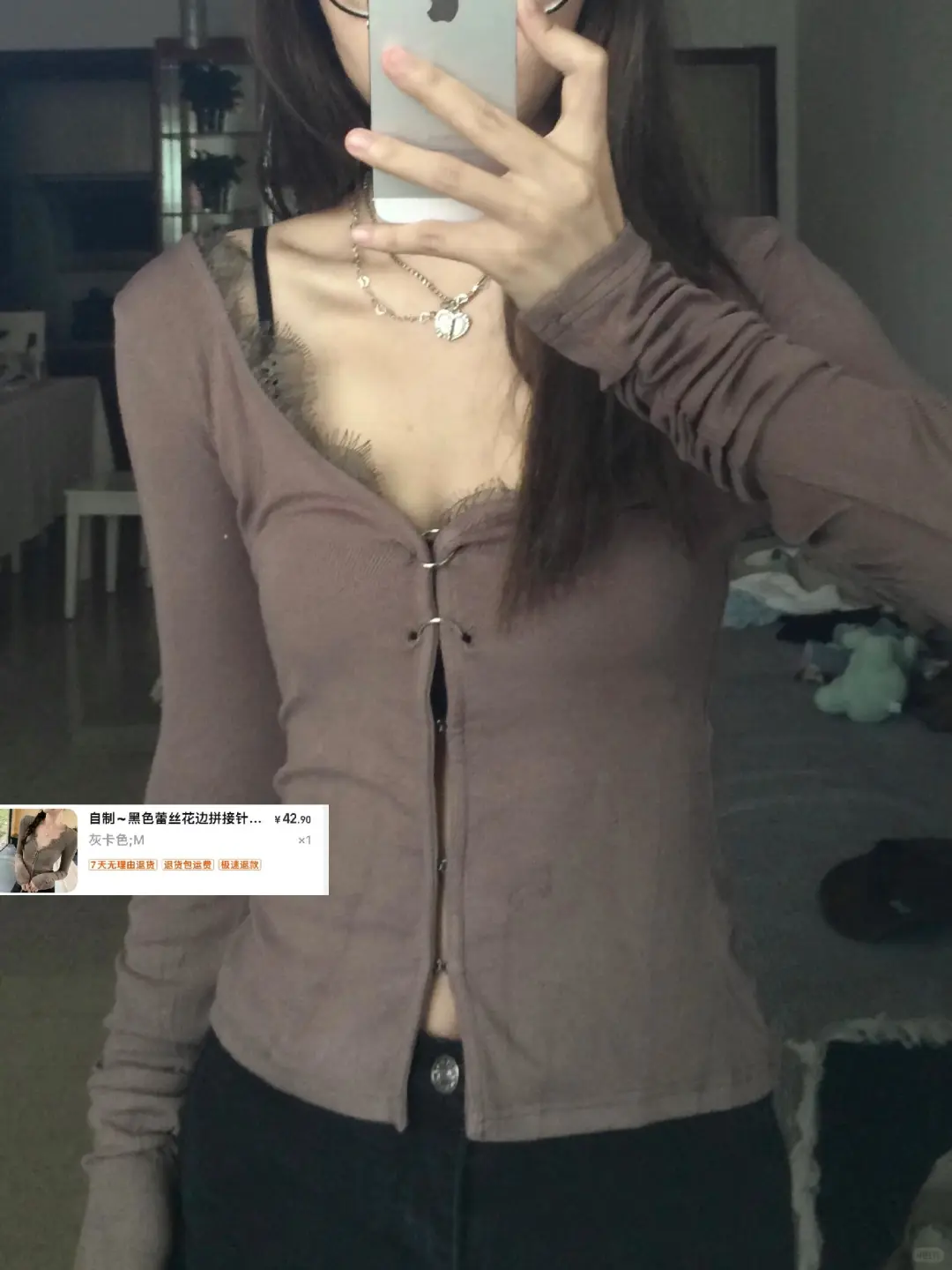 买到了满意的灰色收腰开衫!