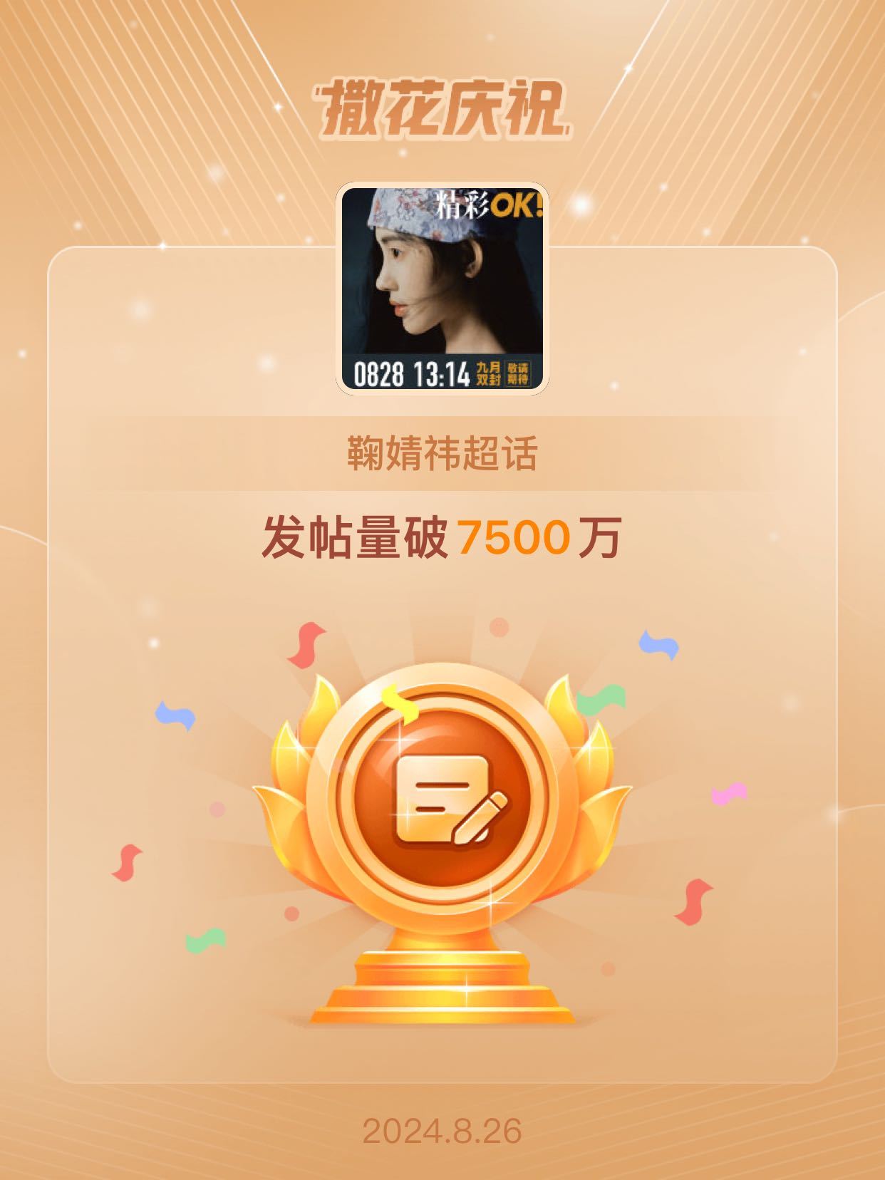 #鞠婧祎[超话]# 🧡#恭喜鞠婧祎超话发帖量破7500万# 🧡#鞠婧祎沁甜映夏封面大片#
