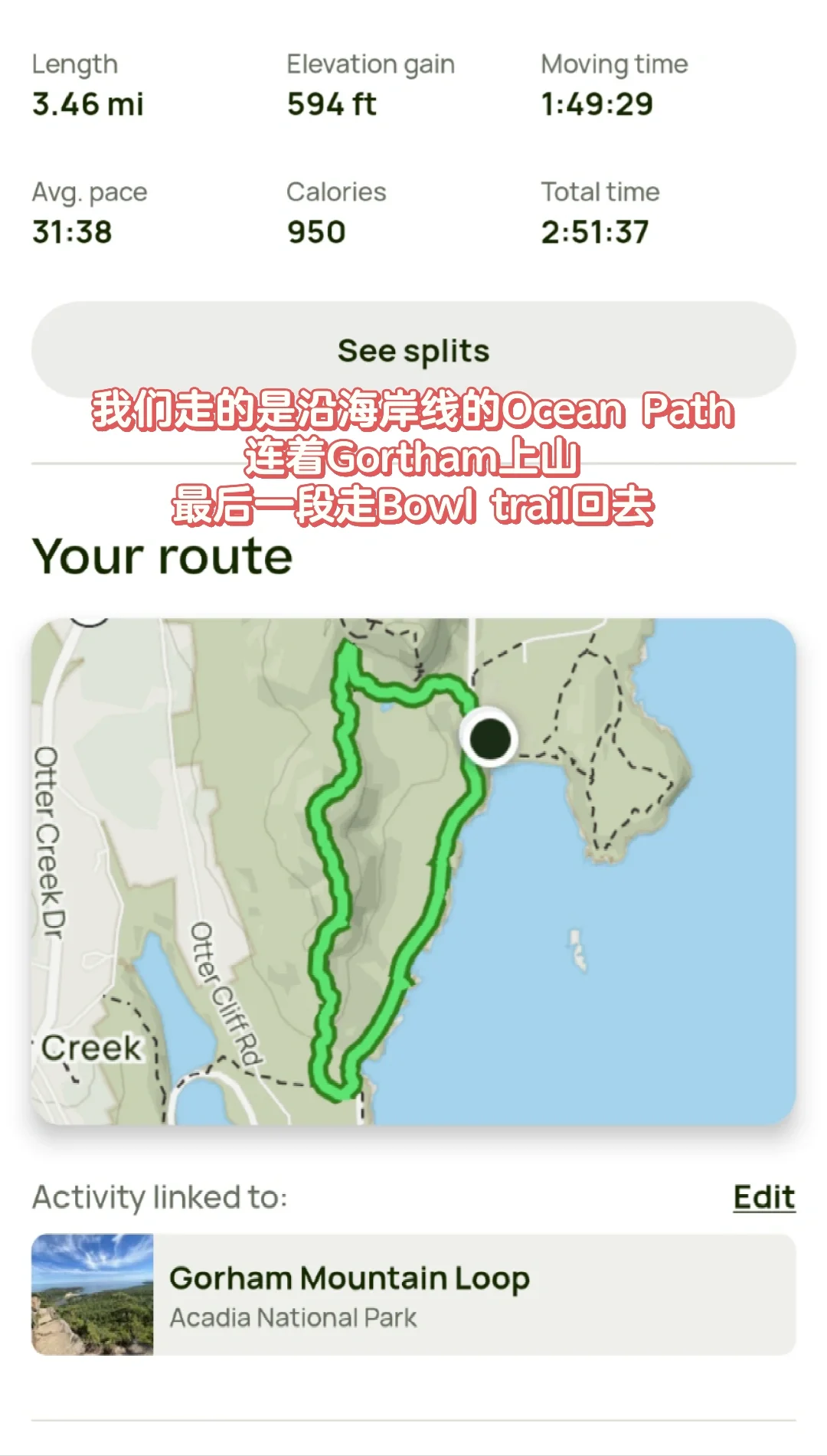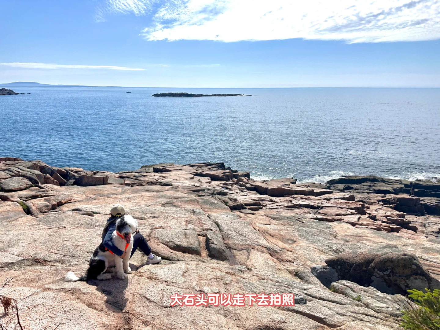 📍Ocean Path(图4): 淡季没有公园bus,只能开车到附近停车场,车位等一等总有的。这是一条沿海步道,海岸线风景很美(图5-8),走完海岸进山换Gortham Trail,最后走一段Bowl trail回去(Beehive反面),等于走完一个环线。山里这条路上上下下很多大石头,有的地方需要把狗托举上去,配短绳不然不习惯登山的狗子一拽人直接崴脚。这条环线走下来三小时左右(带狗走得慢),停车场附近是著名的Sand Beach,很多人游泳 沙滩晒太阳。淡季狗子可以上海滩,6/15之后旺季不让狗子进。