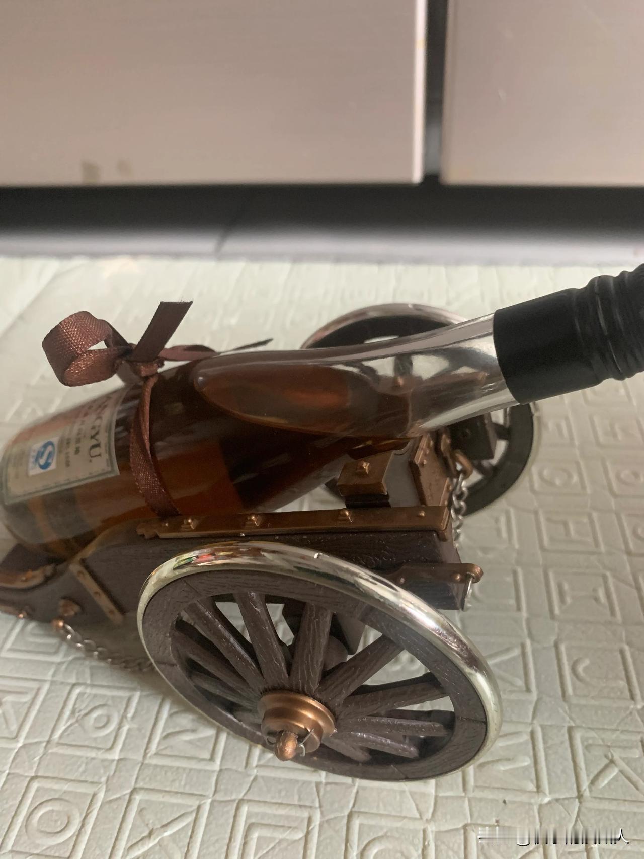 美酒佳肴醉人生,木轮载酒送客行。偶尔在家里找出来一个小玩具,定睛一看还是一小瓶张裕金星高月白兰地,酒好不好喝我不知道,放酒的小车挺好看的,还是收藏起来吧!