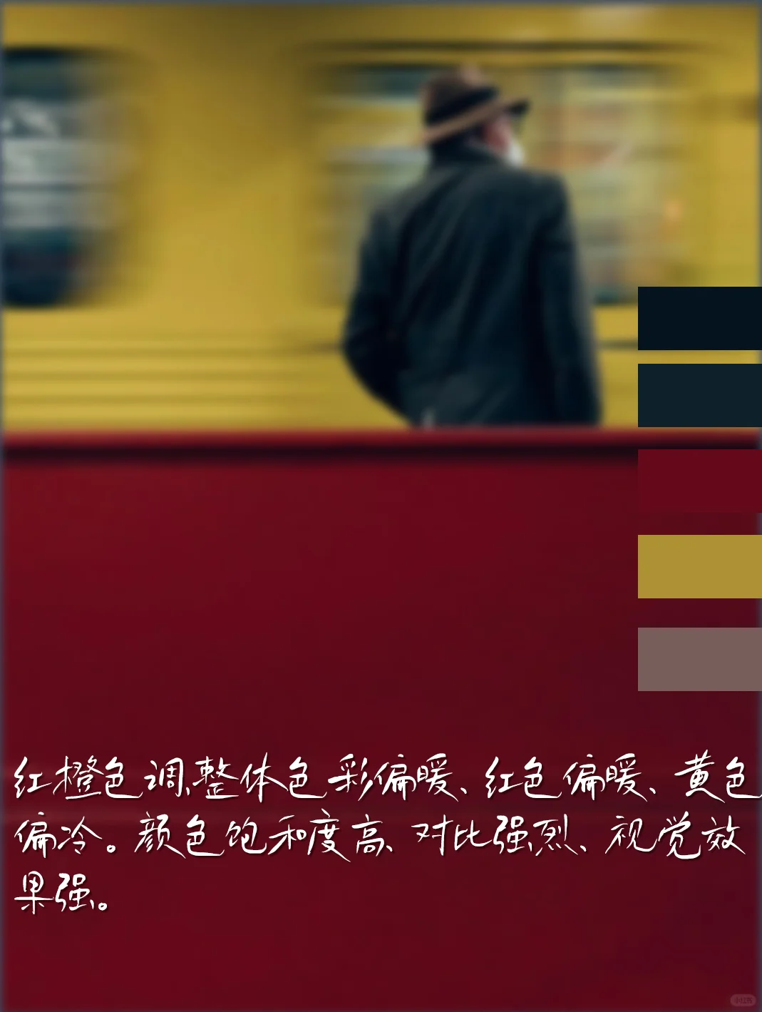[四R]色调:红橙色调,整体色彩偏暖,红色偏暖,黄色