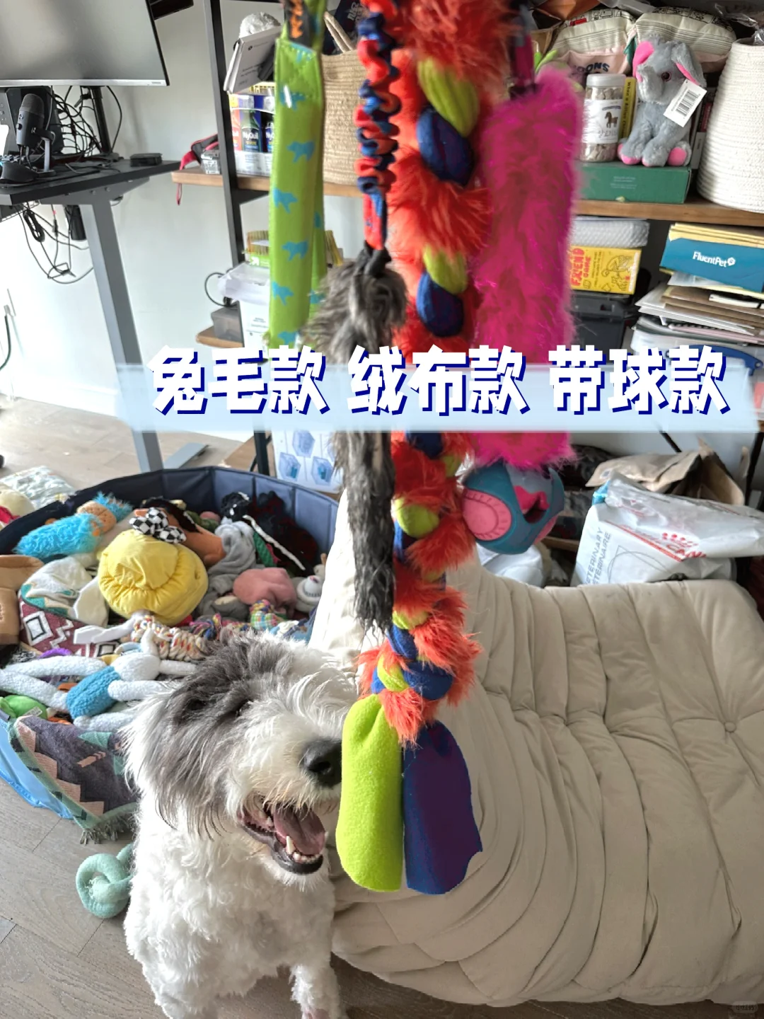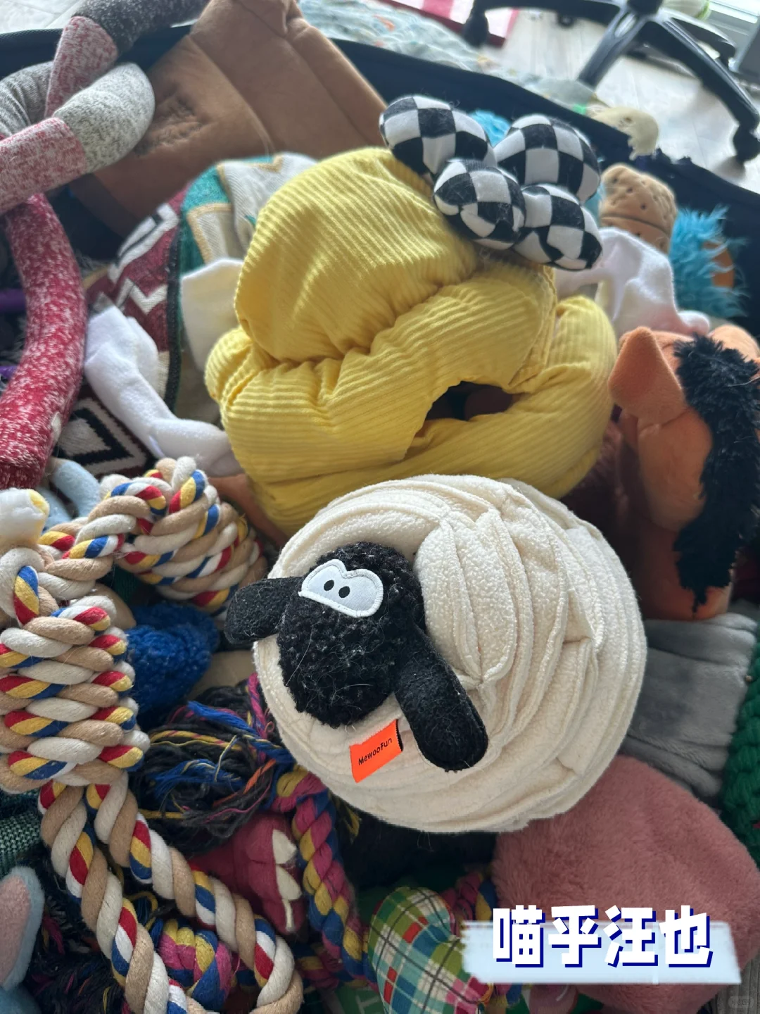 狗子喜新厌旧,并不算最热衷但也会玩,尤其里面带响炮的,无聊的时候会一直滋滋滋。主要因为我爱毛绒玩具所以买了一大堆,Fluff&Tuff堪称狗界Jellycat动物园开会,Emma最爱手长脚长款可以咬着玩,比如长臂猿火烈鸟。Playpet系列也很可爱但摆拍>可玩性。Awoo羊毛玩具颜值高狗子喜欢,但得监督玩,误食羊毛量大容易出危险。海运会买一些图13便宜花哨的消耗品。