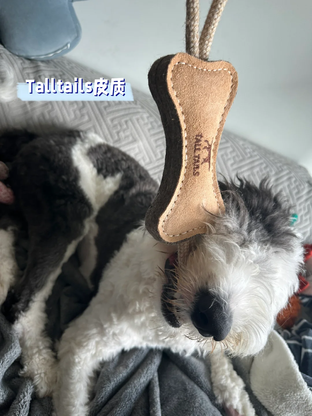 首推图5-6TugEnuff英国牌子,有兔毛羊毛/绒布/带球/藏食袋等等,拔河狗必备。真动物皮毛狗子们为之疯狂,但缺点是掉毛太快,玩一阵子就咬秃了。更喜欢绒布款,咬不烂也爱玩。Talltails有几款皮质的狗子很爱。我会定期海运图14拔河类玩具,便宜咬臭就扔掉不心疼。