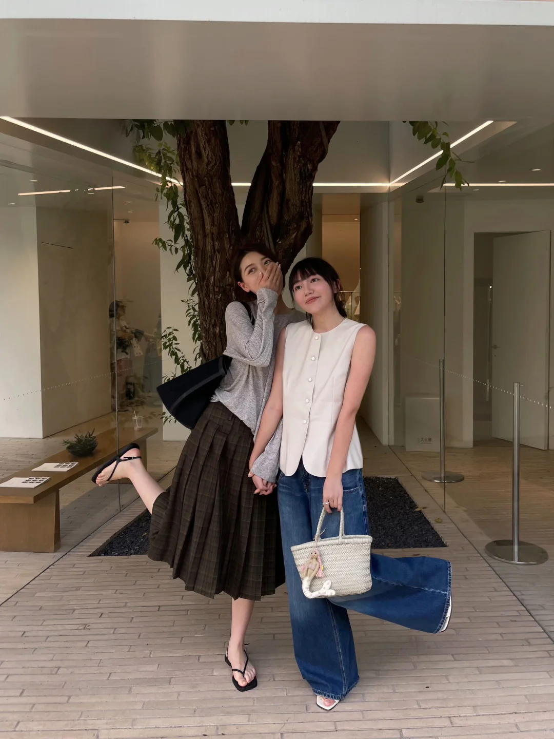 少女清新穿搭,黄色吊带裙搭配米色长裤,轻松惬意。