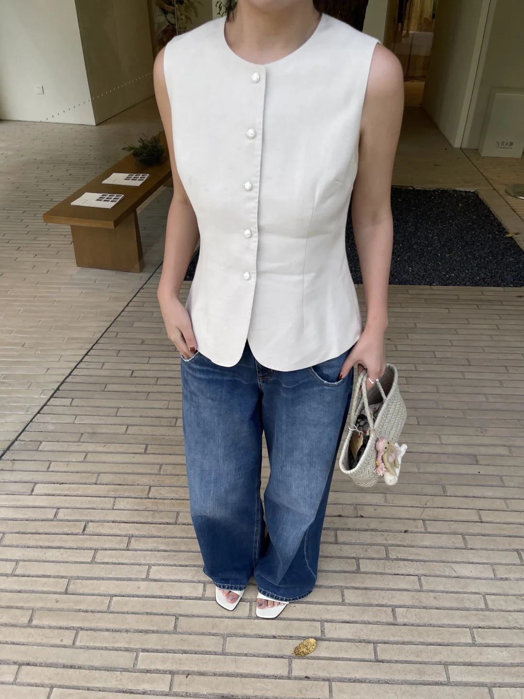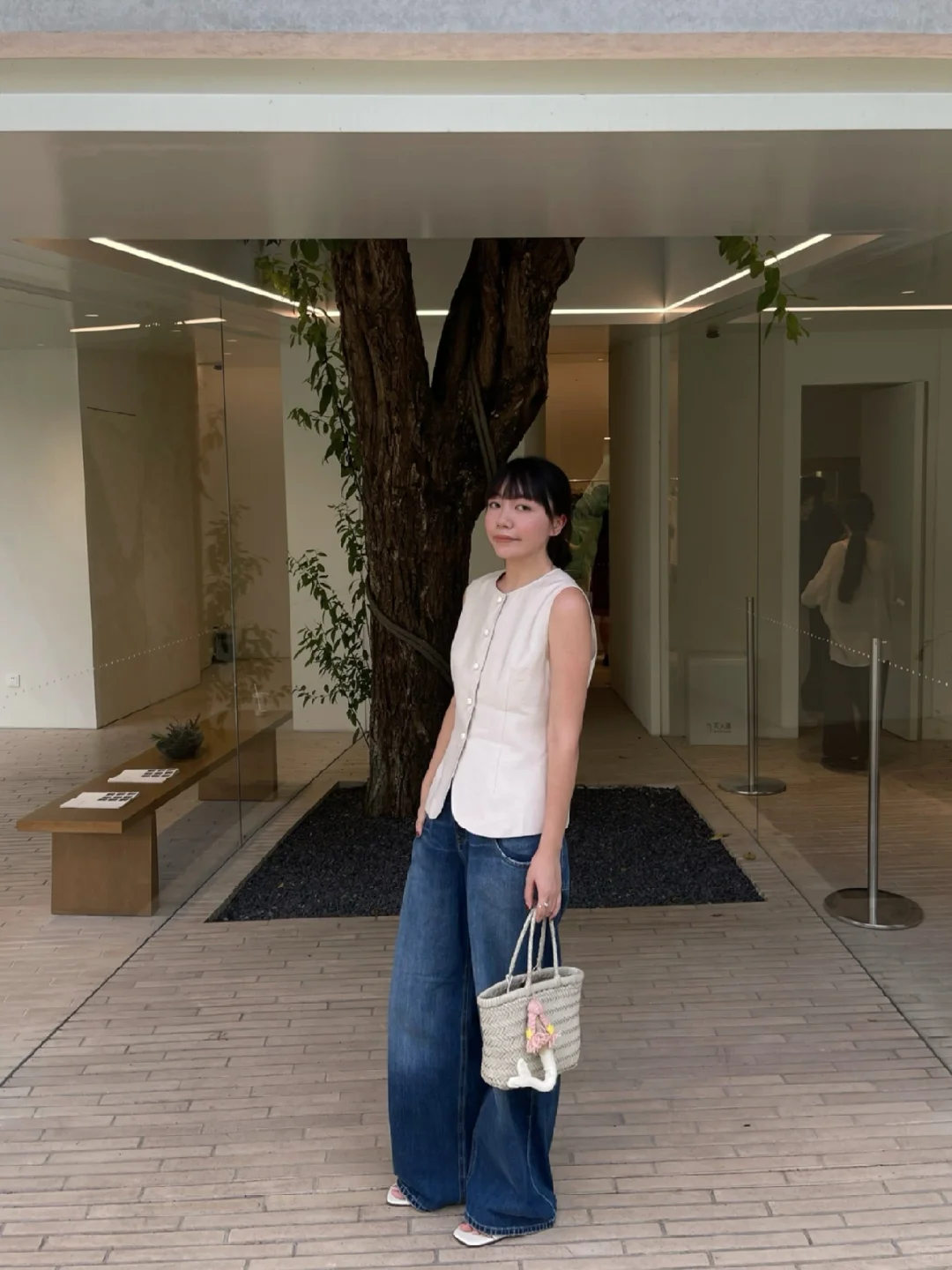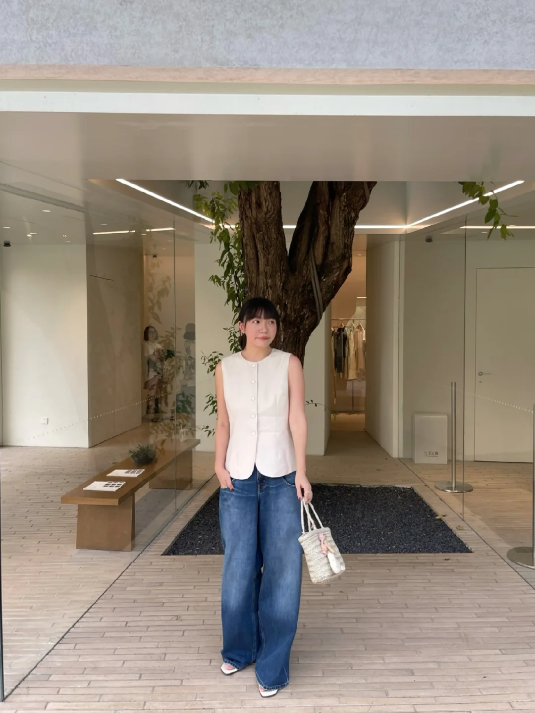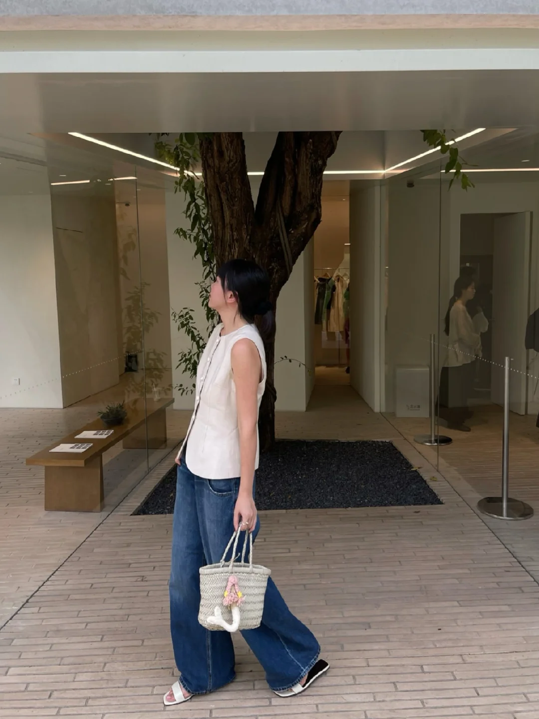 夏天在自然公园里,穿白色背心搭配黄色牛仔裤,妥妥就是甜美少女本女。白色背心清爽又