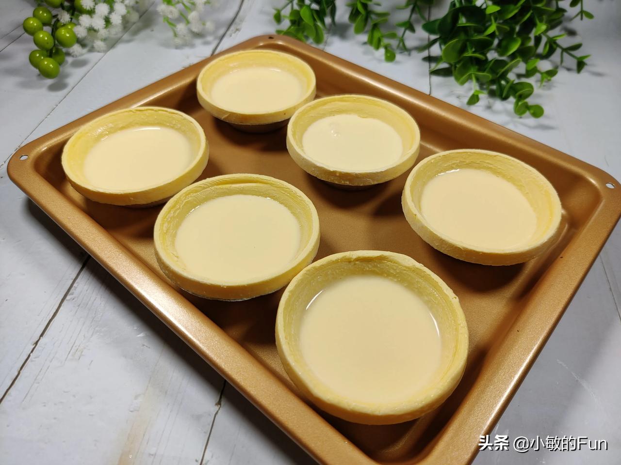 蛋挞🌻 🌾蛋挞的制作过于简单,又是老少皆喜欢的一款甜品,初入烘培的第一款甜品就是它。如今每次收到新烤箱,都会多一份蛋挞来测试温度,看看上色情况。 [撒花]这款挞液的配方用了多年,对于烘培小白相当友好,味道绝对不输于买来的。 蛋挞 食材:🎊 牛奶:50g 白糖:13g 鸡蛋:1个 淡奶油:40g 蛋挞胚:6个 做法:✍️ 1、鸡蛋、牛奶、淡奶油、白糖全部倒入容器中,搅拌均匀 2、混合后的液体用滤网过滤一遍 3、蛋挞液倒入挞胚中,八分满,海氏k7时光机内置蛋挞菜单,点启动进行预热,预热好后放入下层,表皮层上色足,及时盖锡纸。