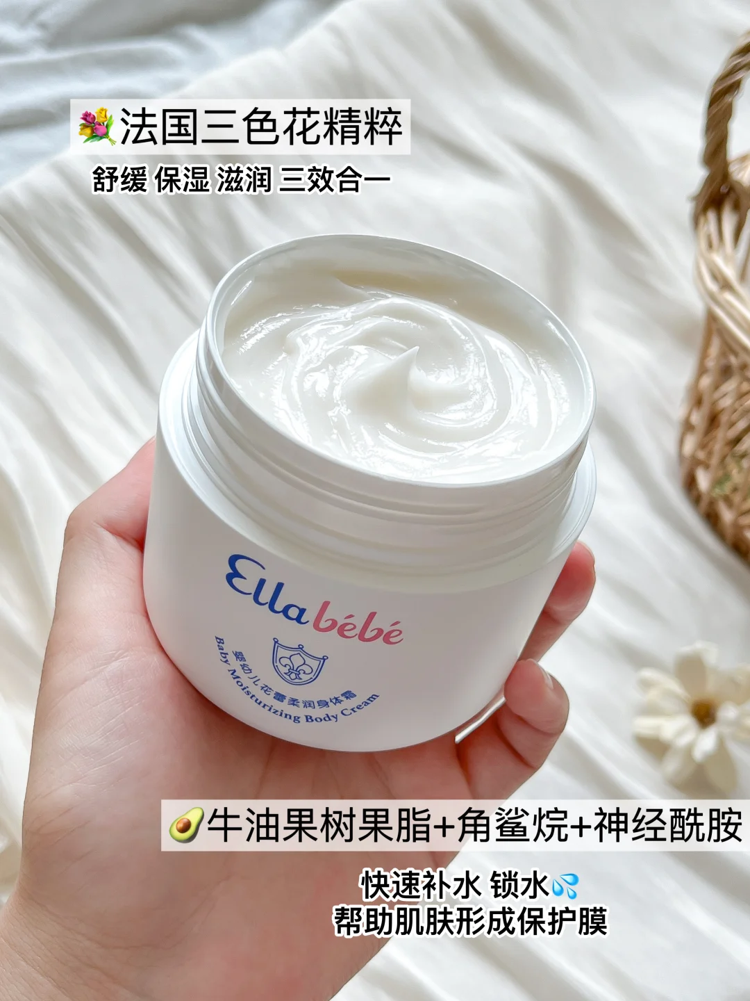 还有明星成分💐法国三色花精粹,舒缓、保湿、滋润三效合一,缓解干痒不适,给宝宝肌肤72h深层保湿舒缓💦