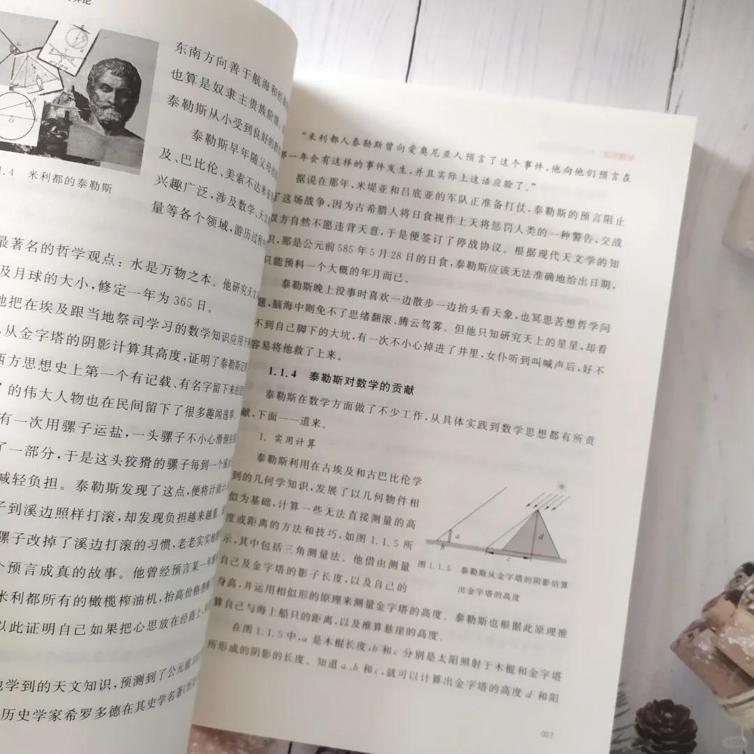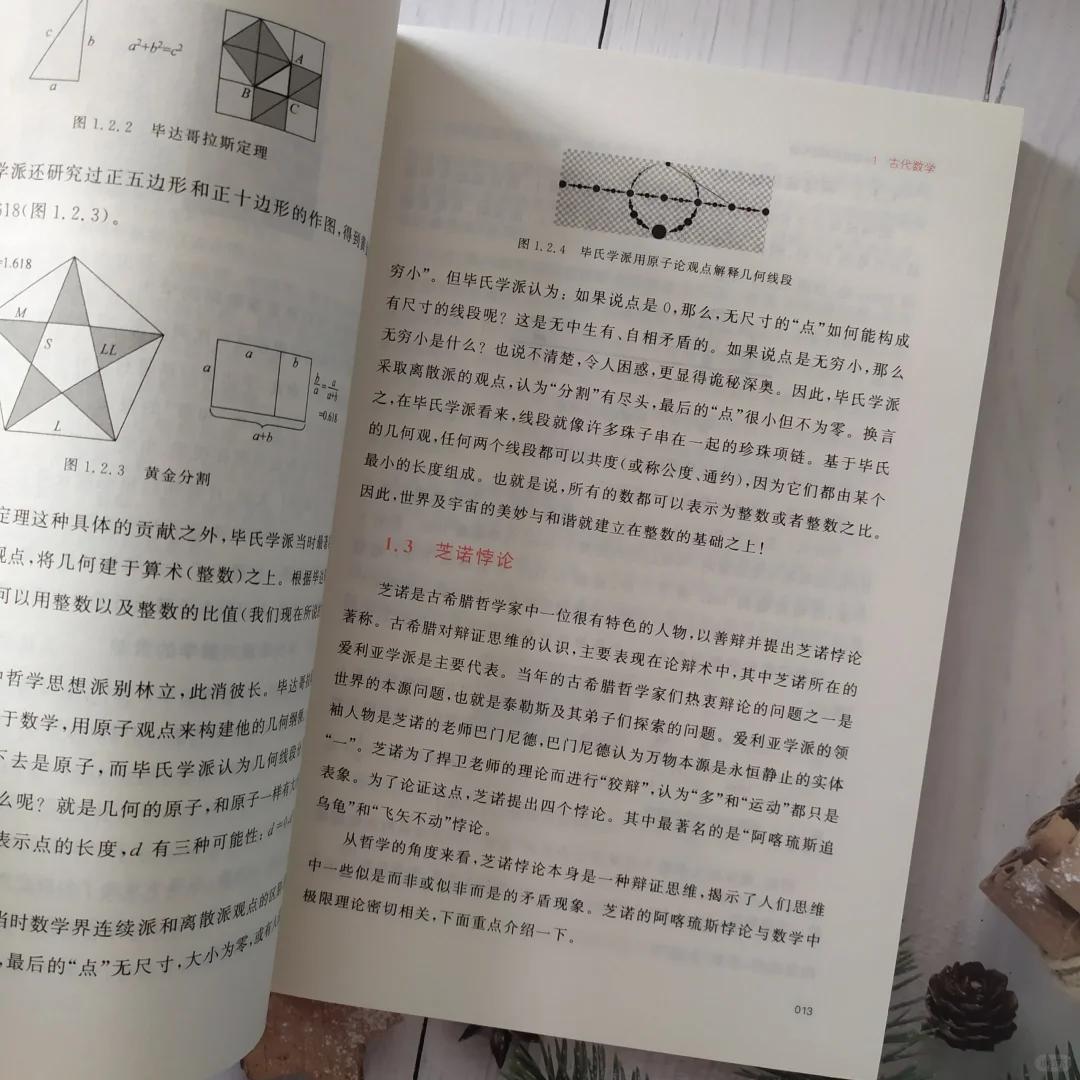 《数学的历程》这本书将要告诉我们,人类是如何认识数、使用数学,并创立取数学这门学科。我们可以想象得到,数学最早的形式,史前时代的人类开始用简单的标记记录数量。例如,在洞穴墙壁上的刻痕可能是最早的数字记录之一。随着时间的推移,人们开始发展出更复杂的计数系统,比如十进制系统,这在许多古代文明中都很常见。如今找到最多最早数学记录的地方是古埃及和巴比伦。目前最古老的几个数学文本是《普林顿322》(古巴比伦),《莱因德数学纸草书》,以及《莫斯科数学纸草书》(这两个是古埃及的)。被称为人类第1位数学家的先贤,是公元前六世纪的泰勒斯,或称之为米利都的泰勒斯。他证明了泰勒斯定理,首先将证明的思想引入数学。将数学从经验上升为理论。距离米利都不远的地方,有一个叫萨摩斯岛的城邦,除了一位主张万物皆数的数学家,他就是毕达格拉斯。他用数学提出了宇宙无比和谐的概念。第1次提出了大地是球形的概念。证明了毕达哥拉斯定理。也就是勾股定理。紧随其后的芝诺悖论。在气候是柏拉图对几何学的崇尚和贡献,他强调演绎和推理不需要依赖经验的抽象性。带有一定的功利化色彩,这种思维对后来的欧几里得和阿基米德都有很大的理想。欧几里德被称为几何学之父。