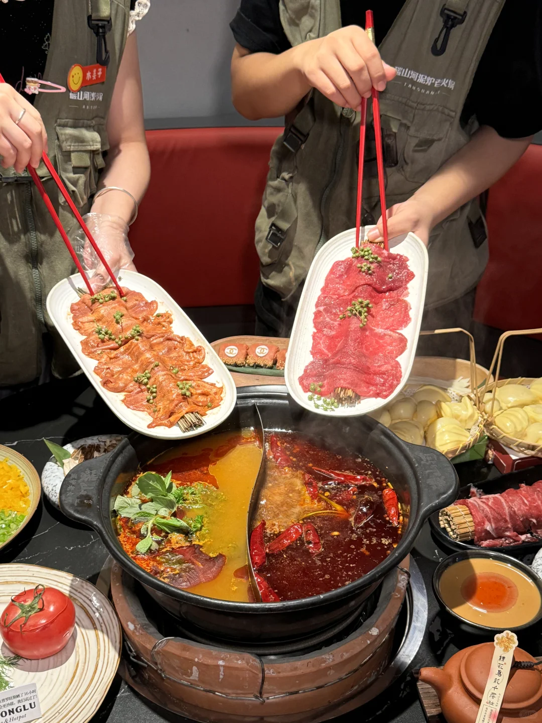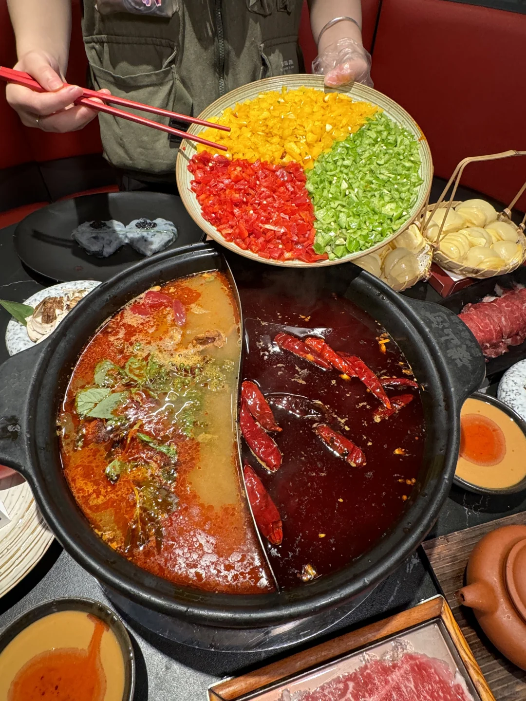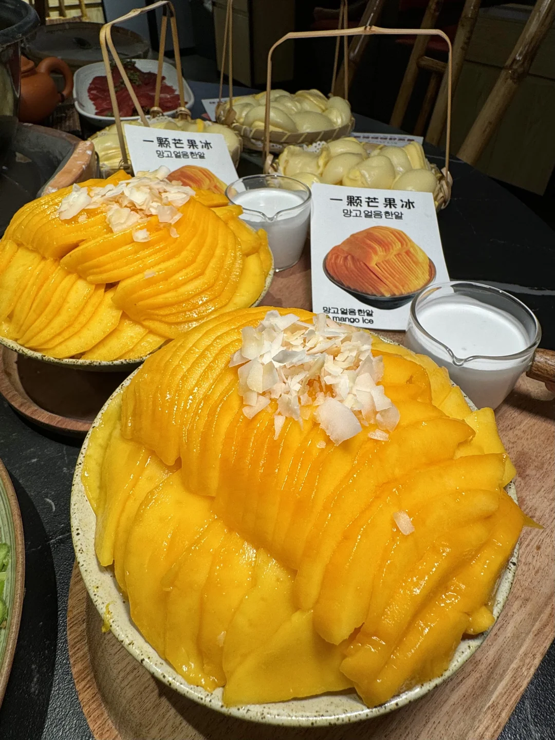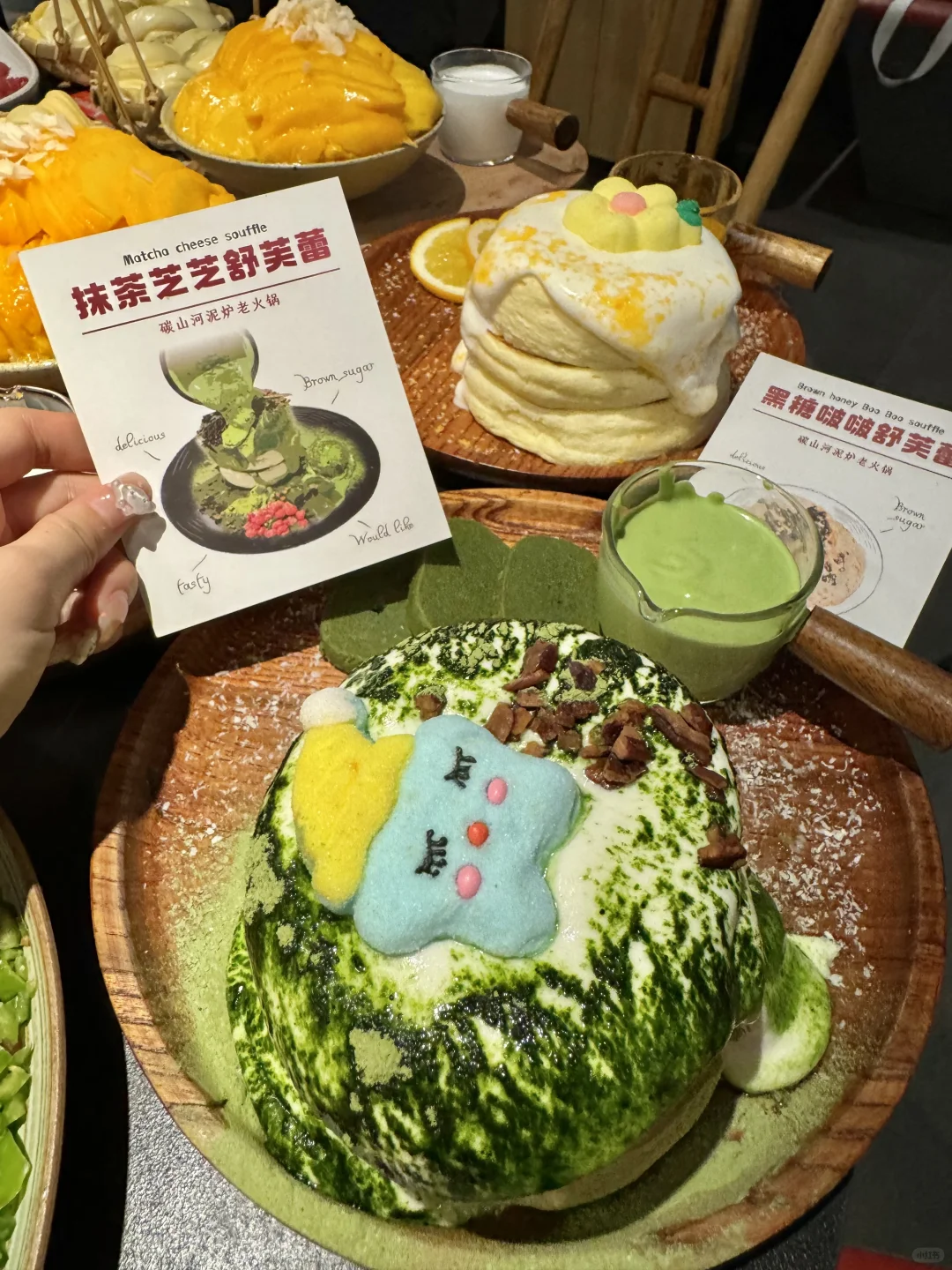 一整颗芒果的绵绵冰!到底是谁还没吃上🍧🥹 一口下去真的超级满足,就在步行街这家云贵川风味火锅店!他家甜品真的好多:柿子大福、柿子雪花冰、舒芙蕾…颜值超高,而且比甜品店的都好吃! - 火锅也很绝,除了重庆火锅锅底,还有云贵川风味酸汤锅底!食材品质也特别高,肉肉hin新鲜~ 他家真的随便点不踩雷!好吃爱吃,下次还吃🤤