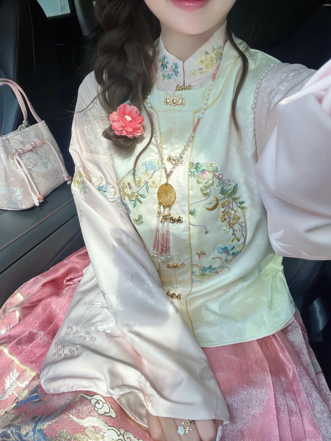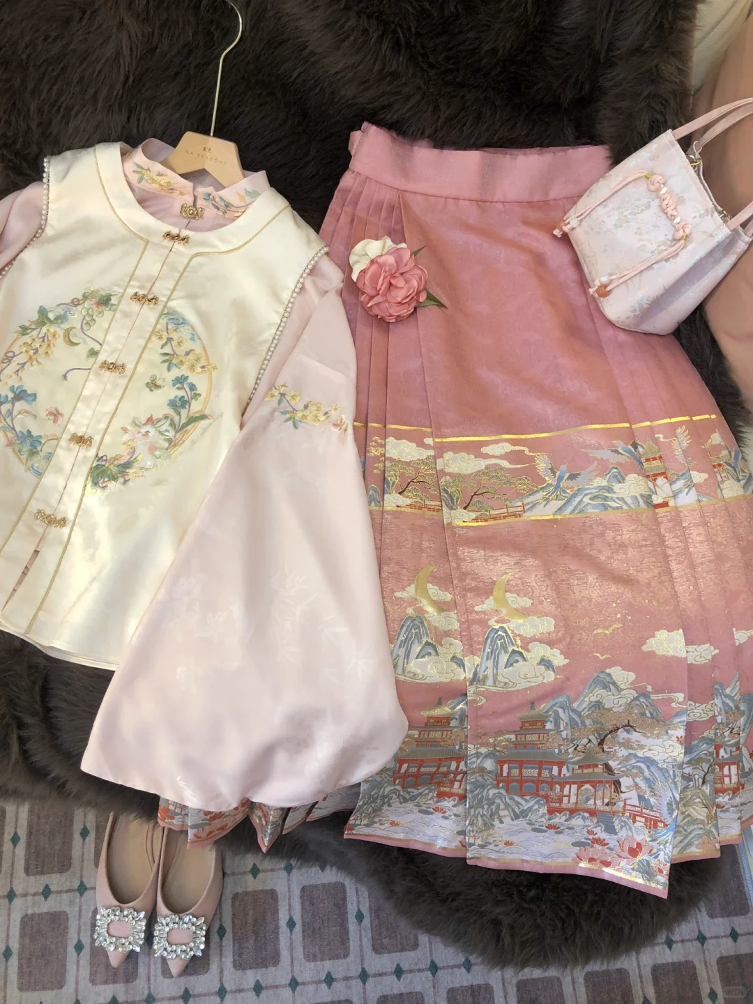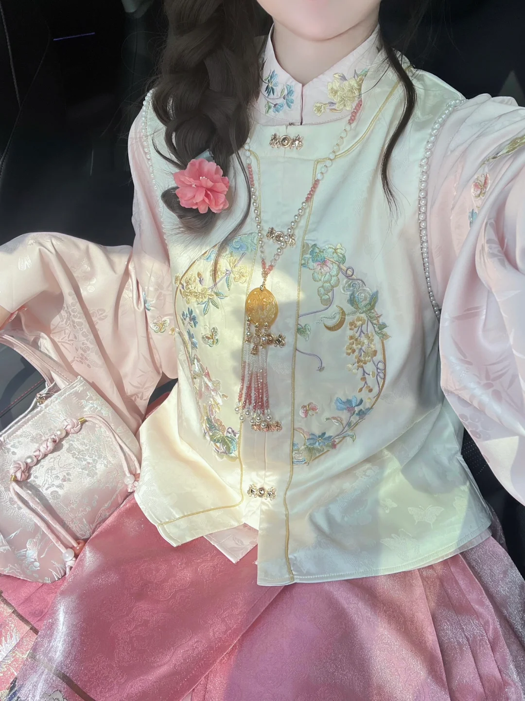 粉色马面裙真滴太美啦! 搭1这种缎面衬衫感觉比较日常 搭2就温婉大小姐的感觉 都好美丽啊![哇R] 图片均来源于我自己yuki