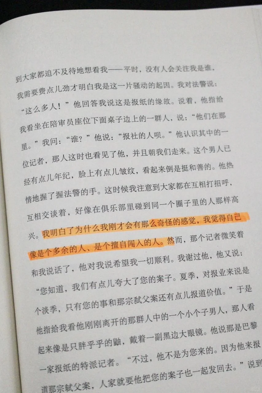 “大家都在互相打招呼,互相交谈着,好像在俱乐部里碰到同一个圈子里的人那样高兴。我明白了为什么我刚才会有那么奇怪的感觉。我觉得自己像是个多余的人、是个擅自闯入的人”。