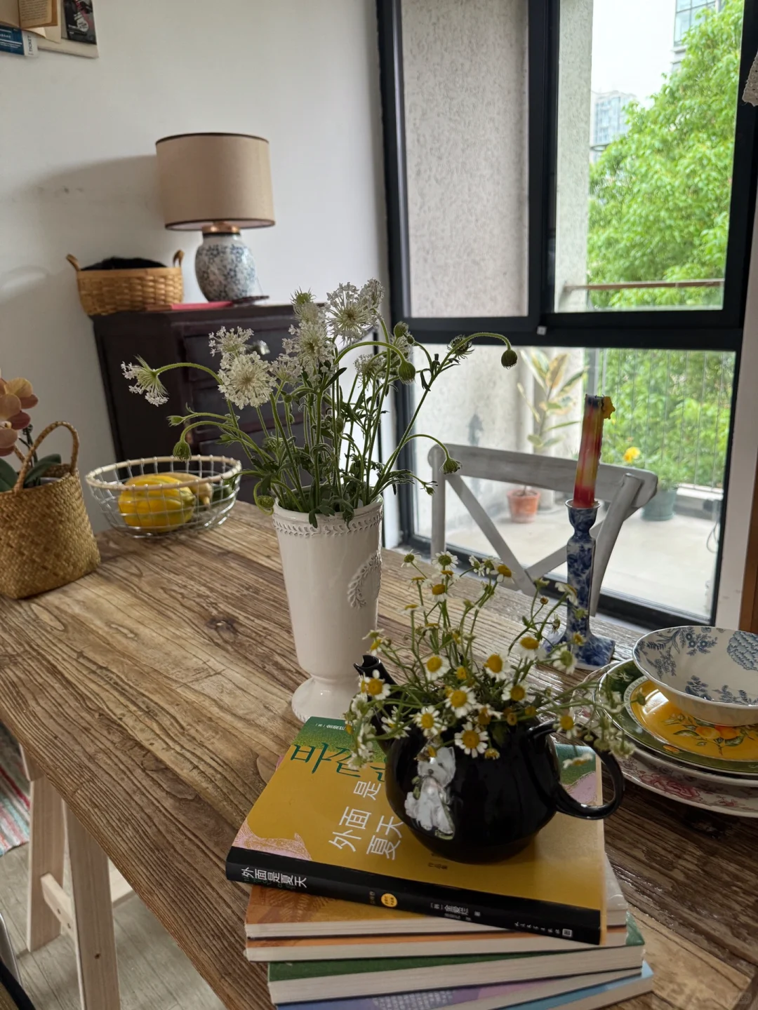 一直想要一张复古的老餐桌,寻了许久,终于在旧货市场找到。 带回家后仔细打磨,又配了桌腿,这辈子还是第一次这么认真地对待一张餐桌,那么以后,也能学着好好吃饭了吧。