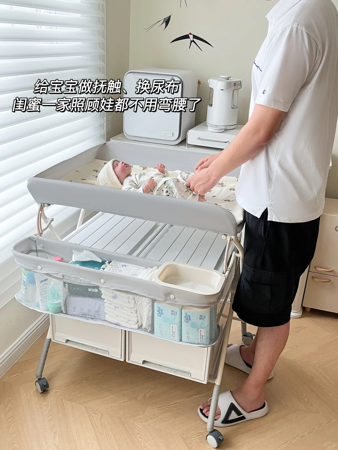 给宝宝换尿布做抚触,不用弯腰,避免产后腰痛,🐷队友185的个都不用弯腰,轻松换尿布