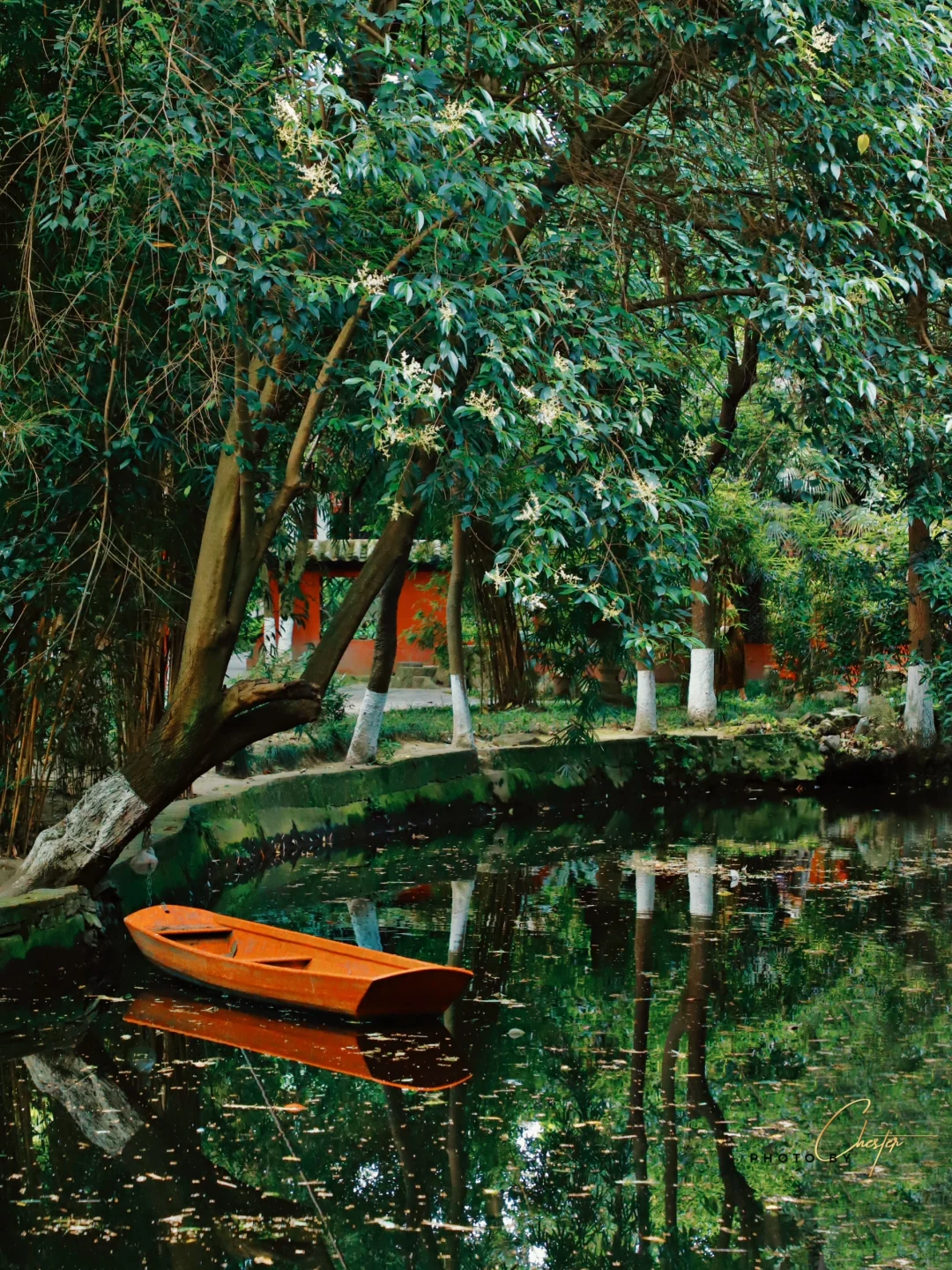 我是没想到, 成都新繁的一座古风公园, 竟然大有来头。 . 🎋东湖公园 📍新都新繁东湖路 🎫2元 . 新繁东湖有1200多年历史, 有“西蜀名园”之称, 是国内唯二有遗迹可考的唐代园林✌🏻 另一个是江西新绛县的绛守居,但建筑景观已毁,只留遗迹。 所以新繁东湖又被称为“中国唐代园林孤本”, 历史意义重大👍🏻 . 东湖整体不算大, 湖光潋滟,庭院深深, 花木掩映下有20多座古典亭台楼阁, 错落有致,朴拙清雅。 行走在曲折回环的小径中, 能看到中国古典园林的韵味。