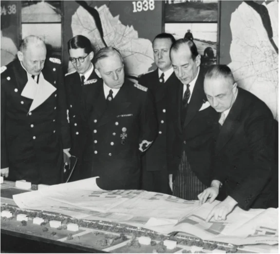 图8:1939年1月,纳c德国外长里宾特洛甫(左三)在波兰外长约瑟夫·贝克(右二)陪同下在华沙国家博物馆参观。纳c上台之后,波兰出于对自己安危的考虑和德国签订了互不侵犯条约,并就保护彼此境内的对方少数民族问题、关税战问题达成妥协,震惊了整个欧洲