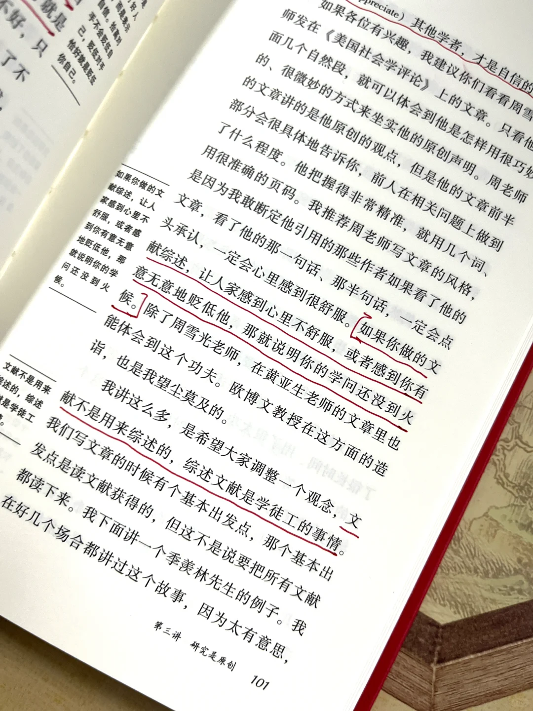 在《学者的术与道》中,作者讲到关于文献综述的三大误解。一是指望通过读名著或顶刊论文找到空白、突破口或生长点,作为自己研究的起点,这不是不可能发生,但概率很小。第二,希望把相关文献一网打尽,执意求全。第三,混淆学习与引用。此外,文献综述与研究写作,都必要,不必硬分先后