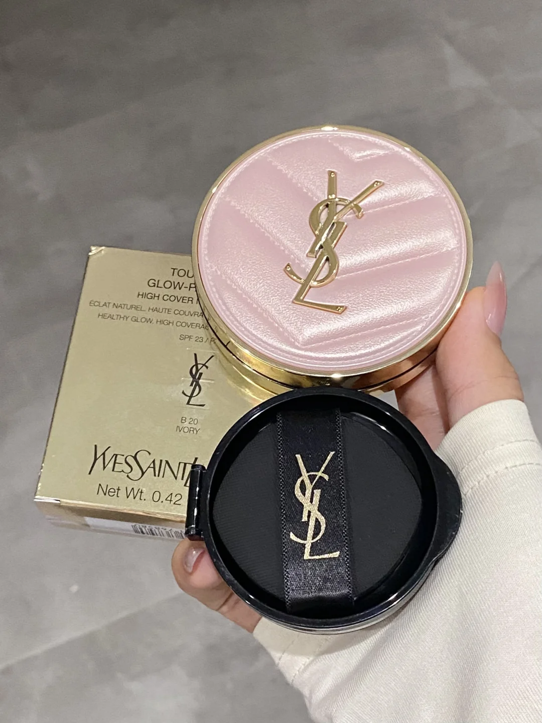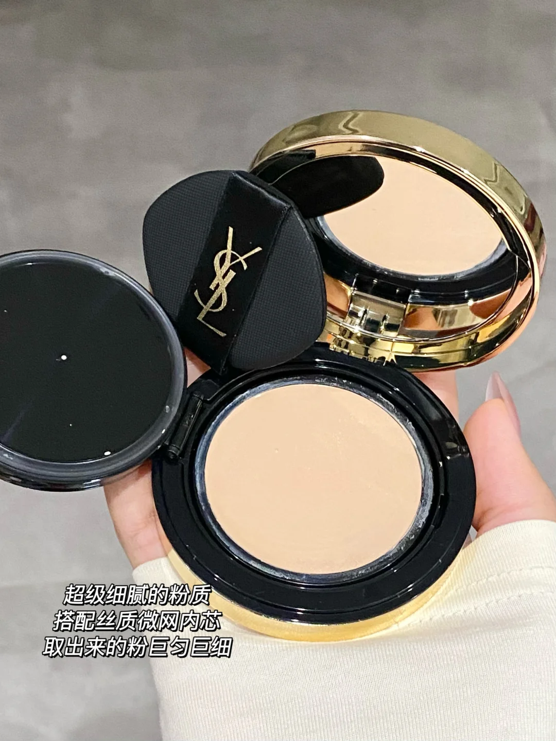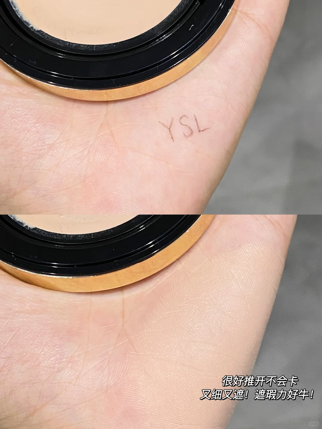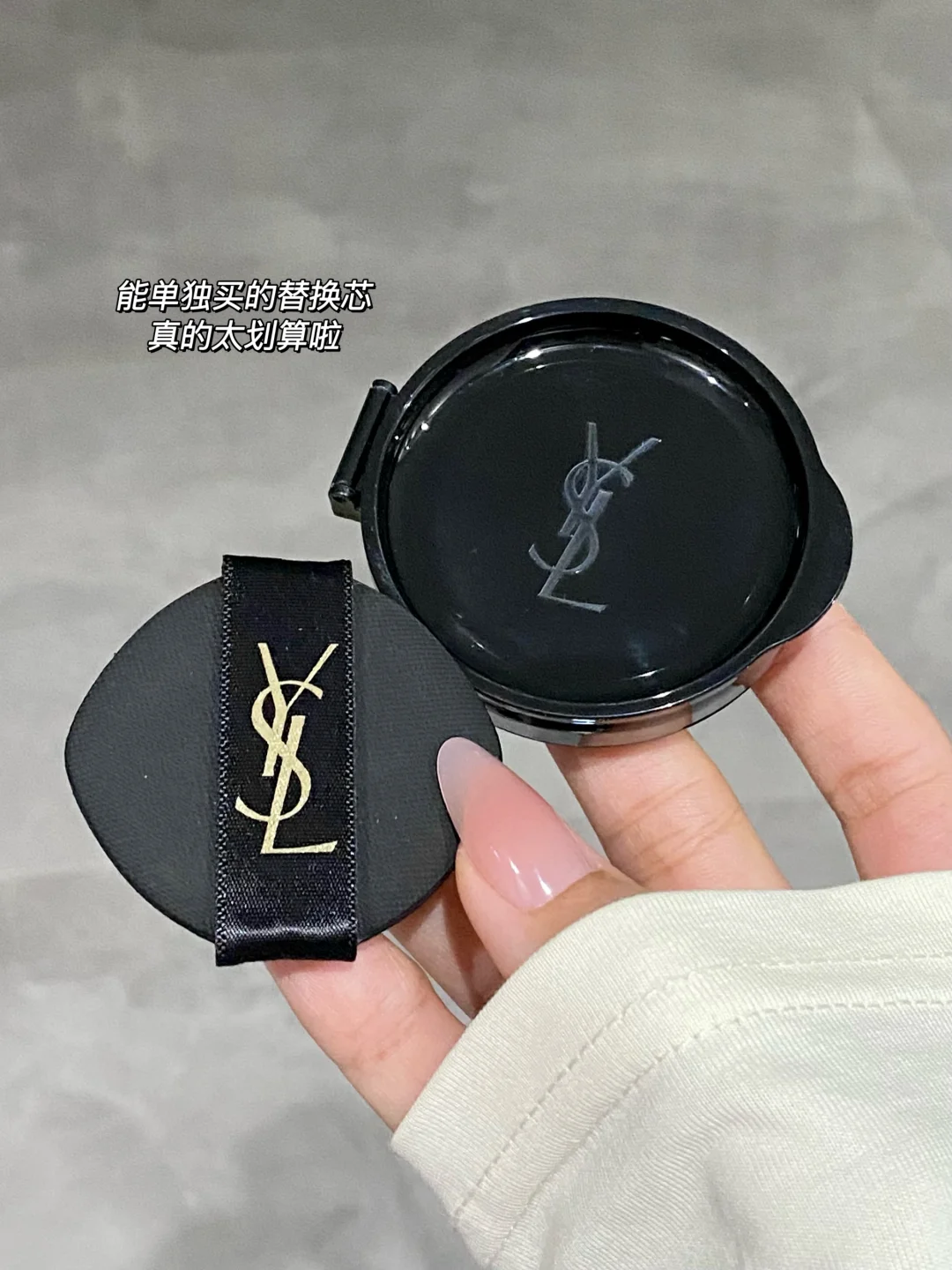 报!!YSL粉气垫出替换芯啦 你是懂打工人的 这下性价比没得说! 实力颜值性价比并存! 能打败YSL的真的只有YSL! 冷感冰川粉的V纹皮革外壳就已经好戳我了! 而且薄薄的带出去也方便 更换的时候只要轻轻一按就下来了 秒换内芯环保又便捷 再也不用烦恼用完的气垫壳子怎么处理啦 很好推开的奶润质地 还又润又遮 上脸是带点微微光泽感的粉光肌 细腻无瑕的妈生妆感真的不能更爱!