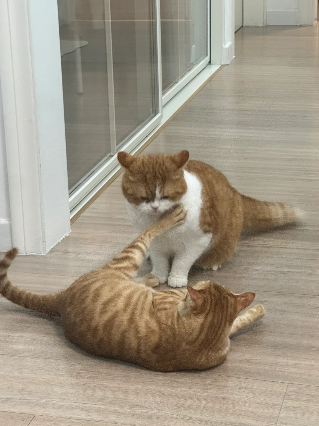 李红中打架总喜欢对着八筒的🥚咬 前阵子给两只猫体检 我才知道原来八筒被误诊了 他并没有被噶蛋 从那以后事情就怪起来了 因为我一直以为李红中是喜欢咬八筒屁股 我想着屁股皮糙肉厚的也没啥关系 仔细观察才发现他回回落口都是八筒的🥚🥚 😅这是多深的执念 昨天终于被我拍到了 我没有乱说 他真的很爱咬🥚