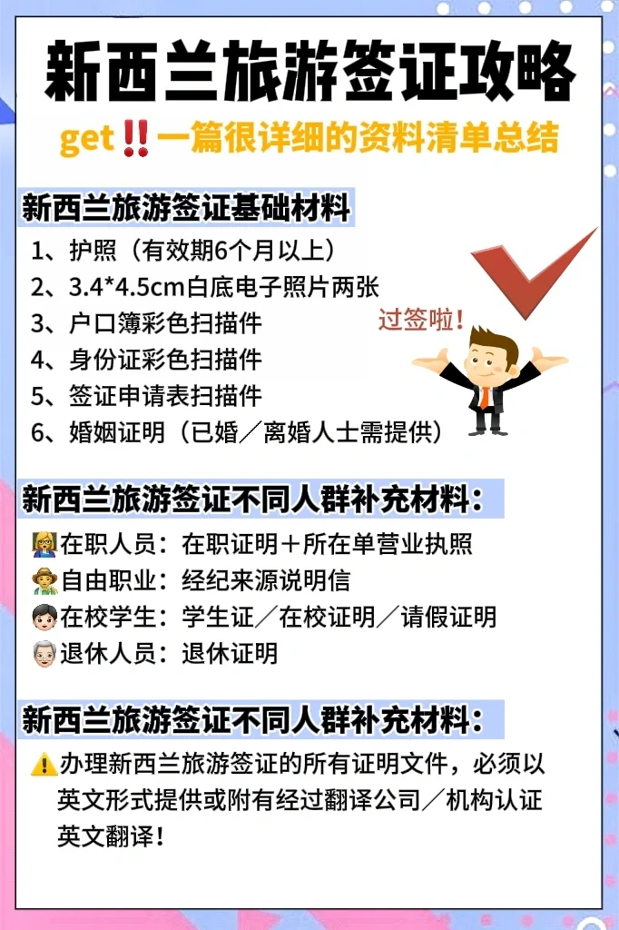 ⚠️办理新西兰旅游签证的所有证明文件,必须以英文形式