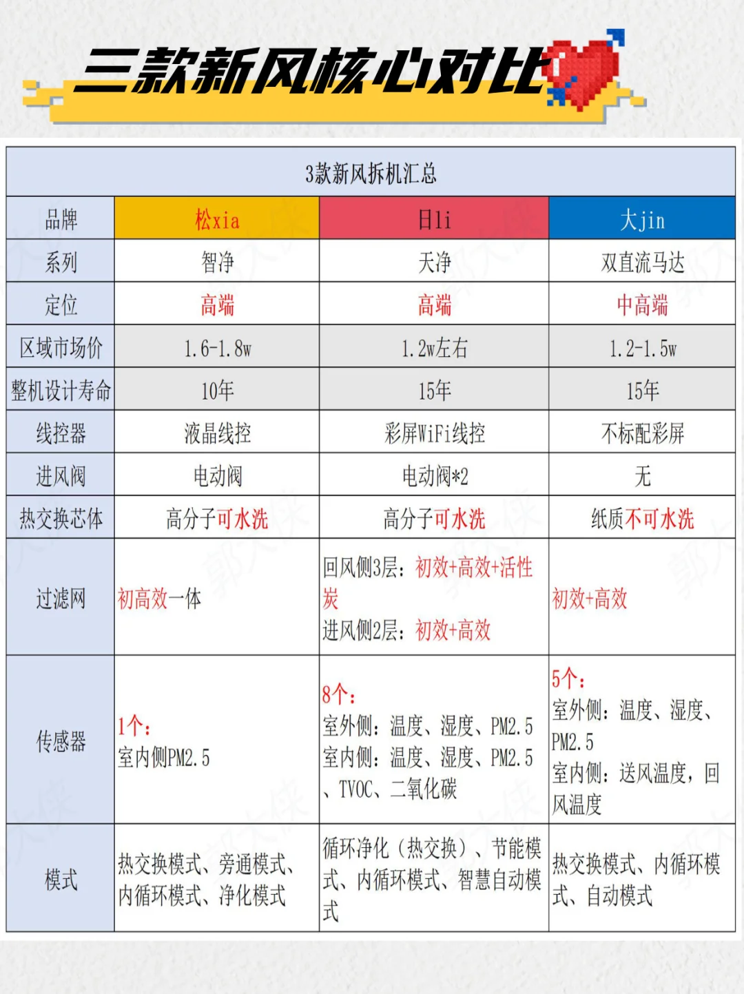 新风系统你会选哪个品牌?[投票] 大家好,郭大侠来了[飞机R] 很多宝子想选与中央空调同品牌的新风系统,但不知道到底怎么样,也不知道选哪个品牌,今天帮大家总结了中央空调和新风综合前三的品牌,新风的热销新风机型: 如图所示,大家也可以结合此品牌的中央空调做决定。