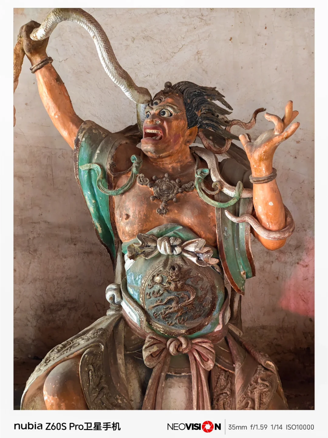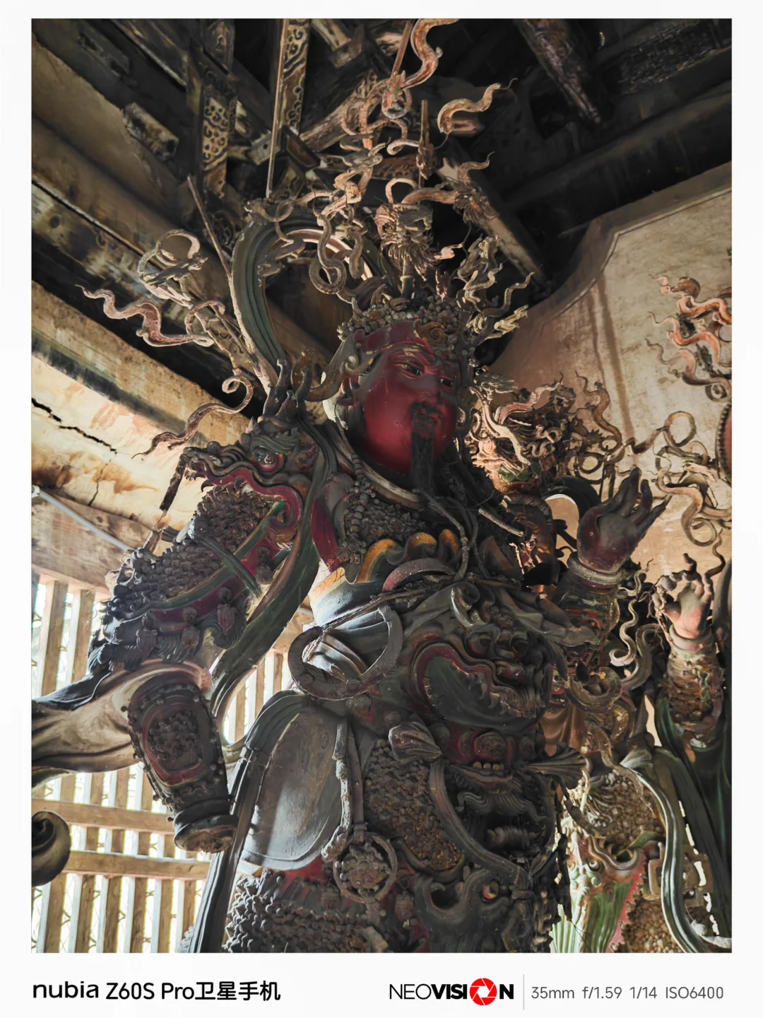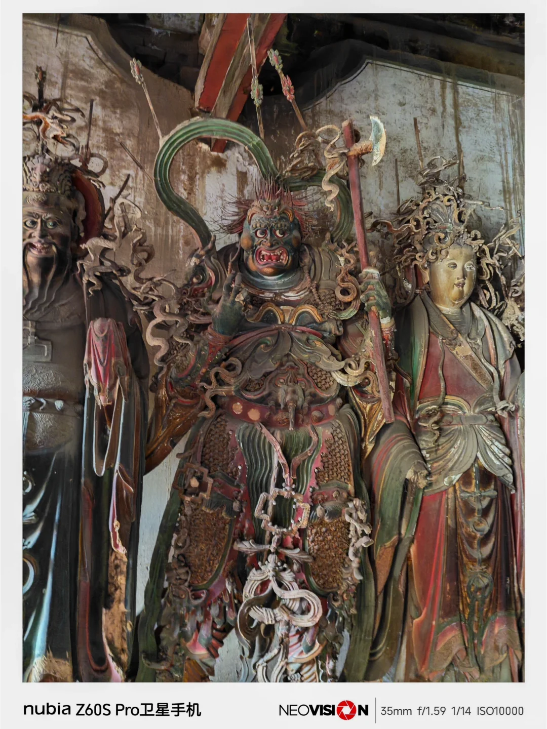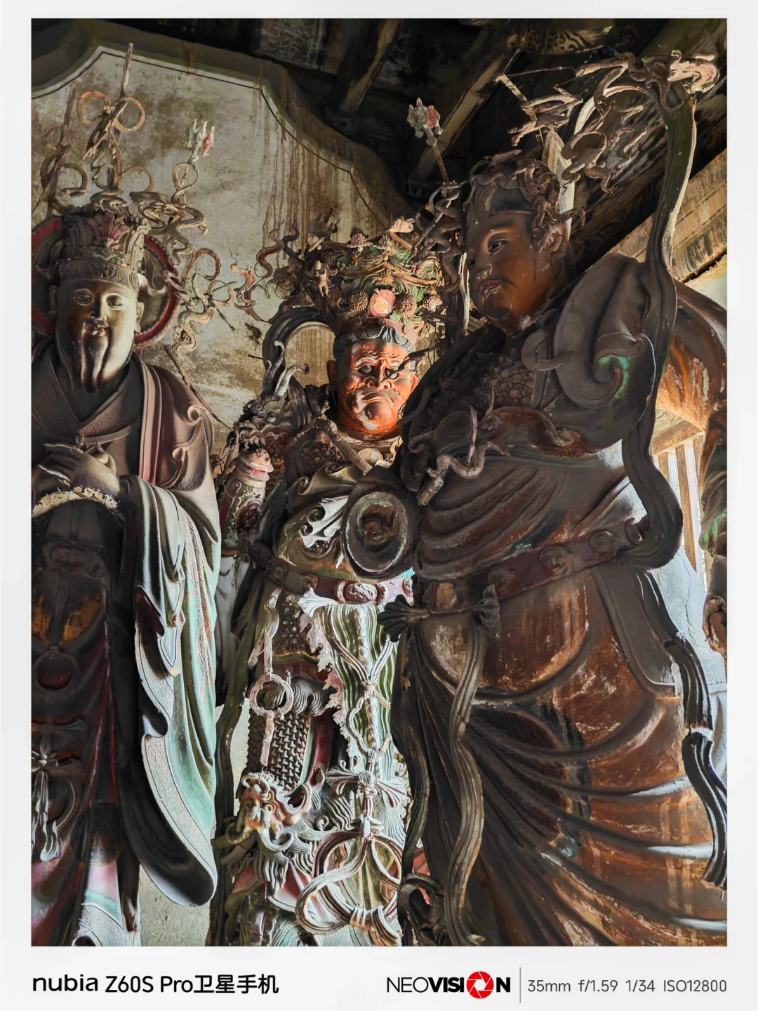 在成像方面:它配有第三代35mm定制光学,拥有F1.59的大光圈,拍摄主体可以拥有完美的虚化,有着高达5000万像素!各种彩塑的细节,都清晰可见,媲美专业相机,广角为13mm等效焦距,125度超广视野,Af长焦等效80mm焦距,Ai长焦超分,即便隔着围栏,也能轻松拍到稍远距离的彩塑,画面依然很清晰,绝对是带去打卡《黑神话·悟空》的出片利器!