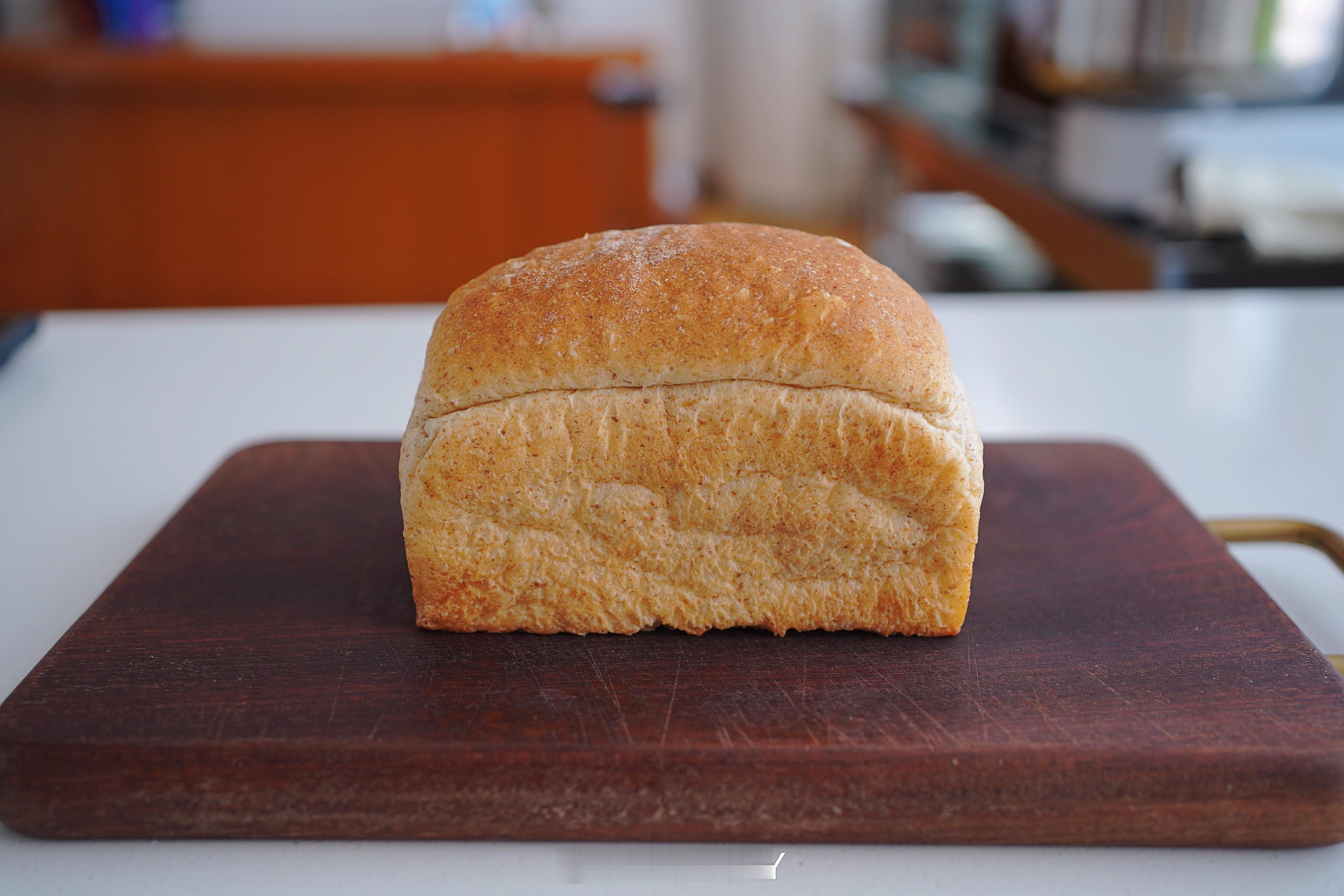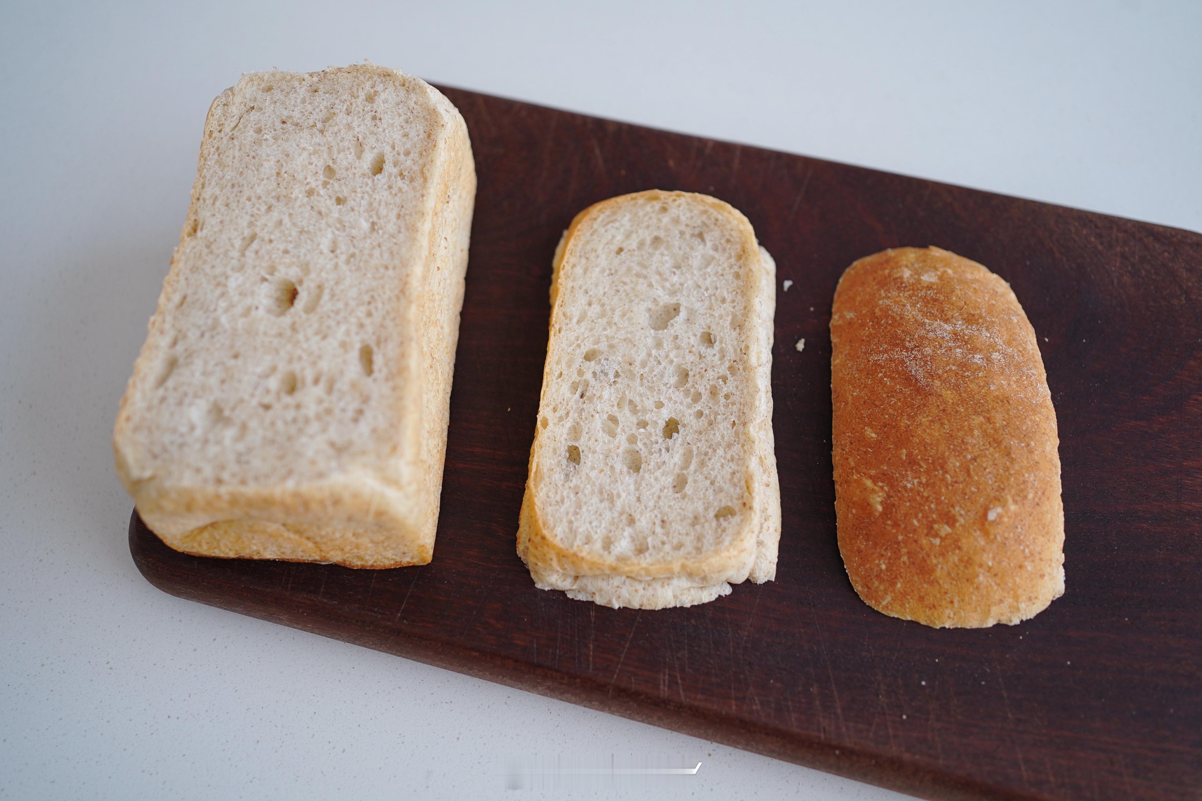 昨天做了黑全麦吐司,多出一个不够秤的小吐司,今天早上来试一下,竖切有点小,横切吧,像恰巴塔一样[偷笑]