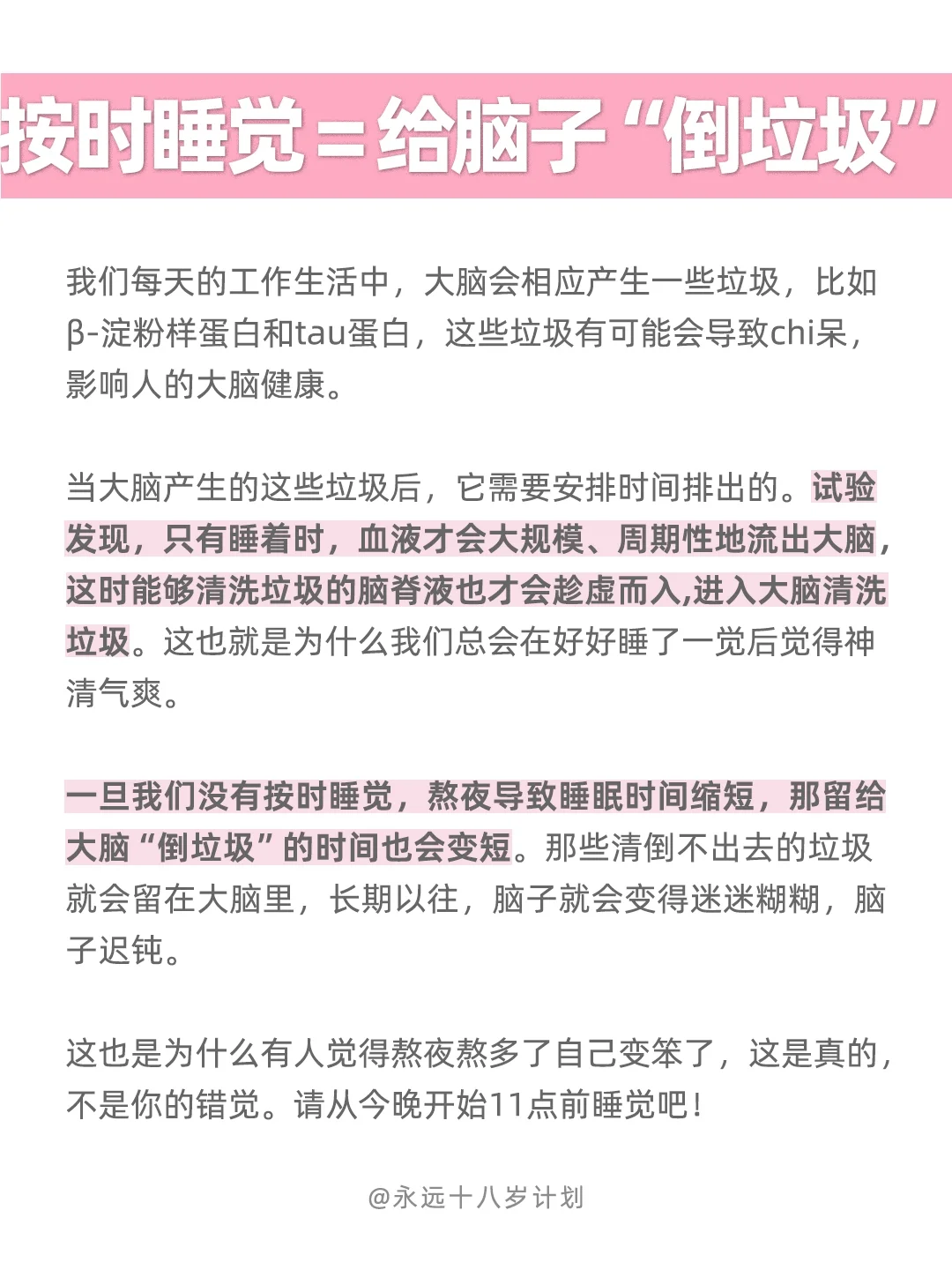 永远十八岁按时睡觉=给脑子“倒垃圾”